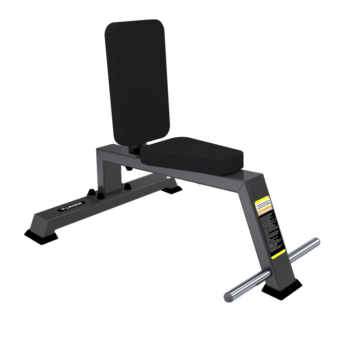 Конструкция оснащена упором для ног, обеспечивающим максимальную устойчивость и комфортное положение спортсмена во время выполнения упражнения. Упор выполнен из металлической хромированный трубы с пластиковыми заглушками на торцах.