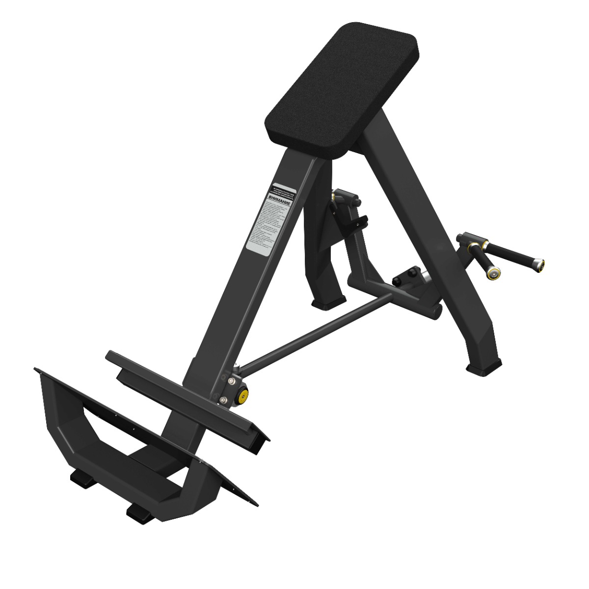 Многопозиционные рукояти с резиновым покрытием и декоративными заглушками с болтовым креплением обеспечивают возможность широкого и параллельного хвата, позволяя варьировать нагрузку на мышцы спины.