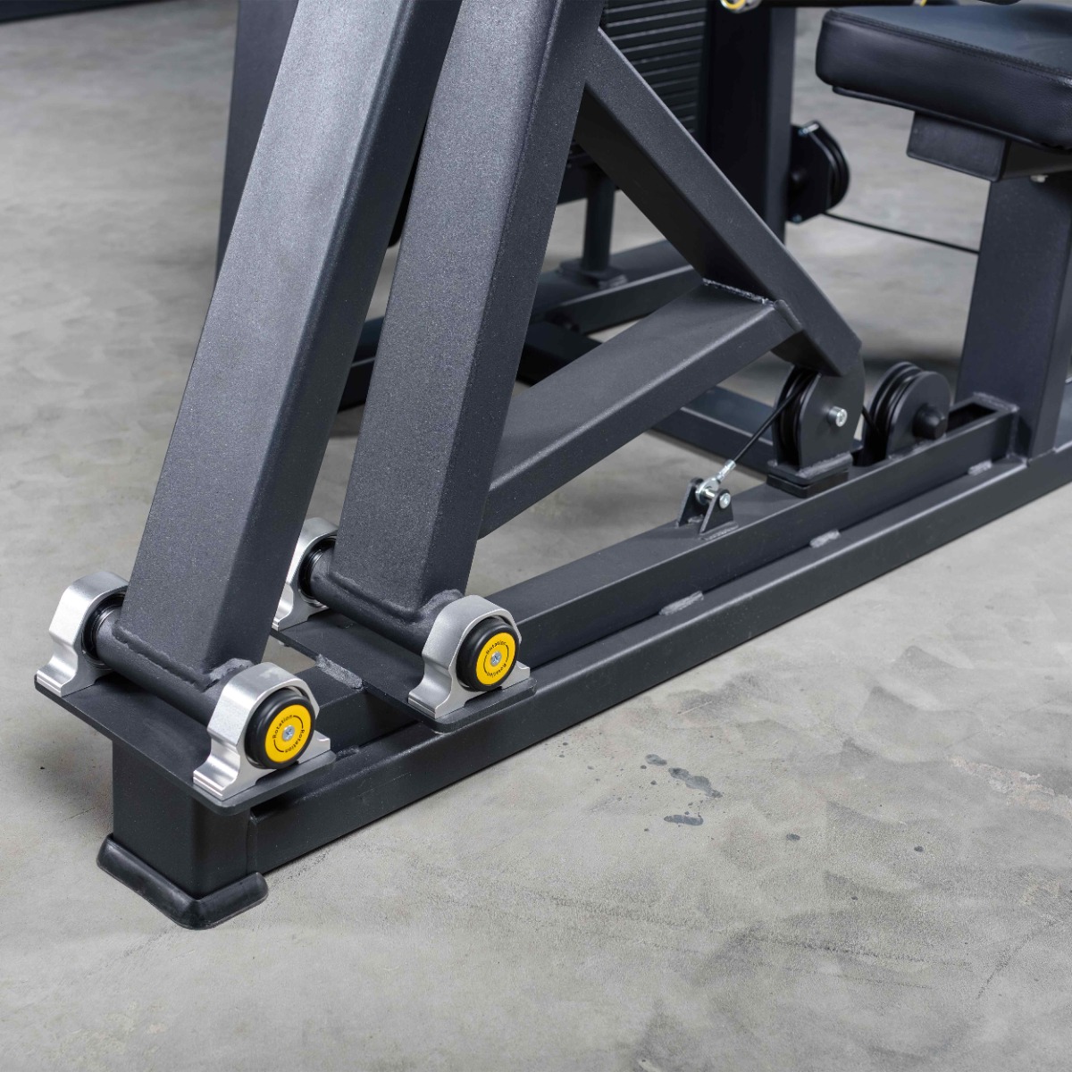 Система нагрузки – тросовая, с весовым стеком 100 кг. Весовой стек выполнен из стальных плит с порошковым покрытием.