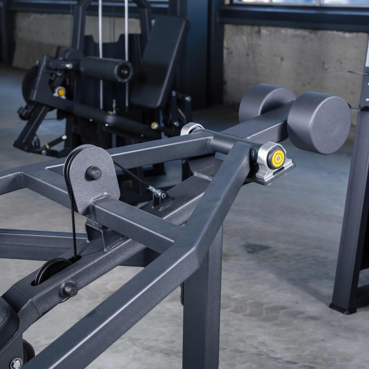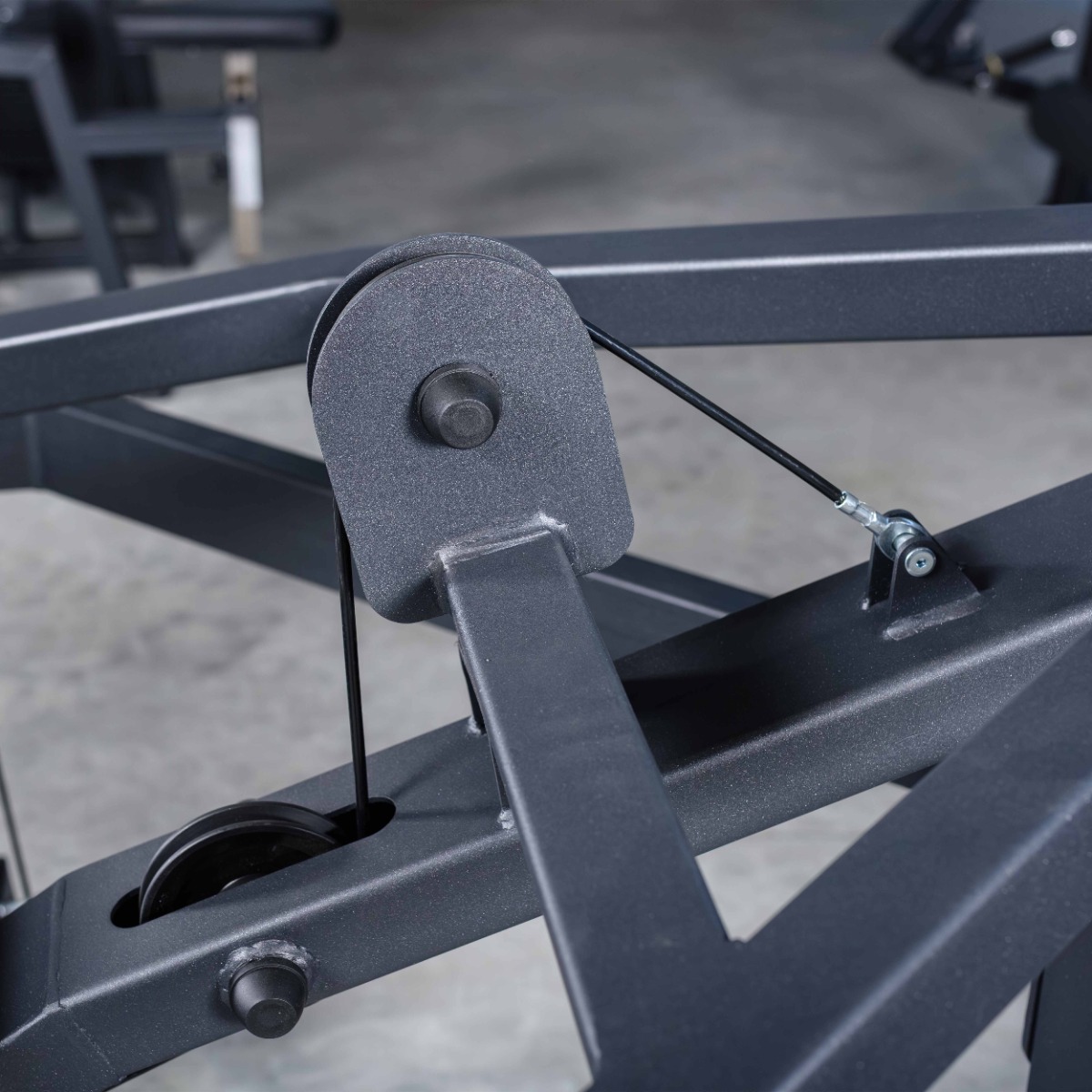 Система нагрузки – тросовая, с весовым стеком 100 кг. Весовой стек выполнен из стальных плит с порошковым покрытием.
