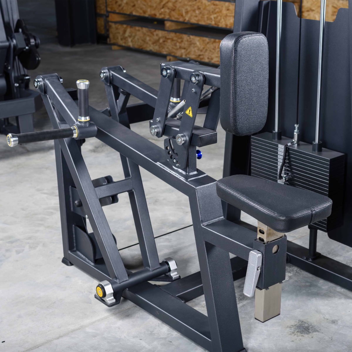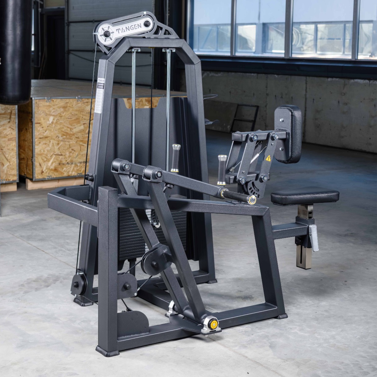 Профессиональный тренажёр TANGEN A2034 Гребная тяга с упором на грудь предназначен для тренировки мышц спины с акцентом на широчайшие мышцы, ромбовидные мышцы и задние пучки дельтовидных мышц. Дополнительно в работу вовлекаются бицепсы и мышцы предплечий. Конструкция с упором на грудь позволяет изолировать мышцы спины и минимизировать нагрузку на поясничный отдел, обеспечивая стабильную и контролируемую биомеханику тягового движения.