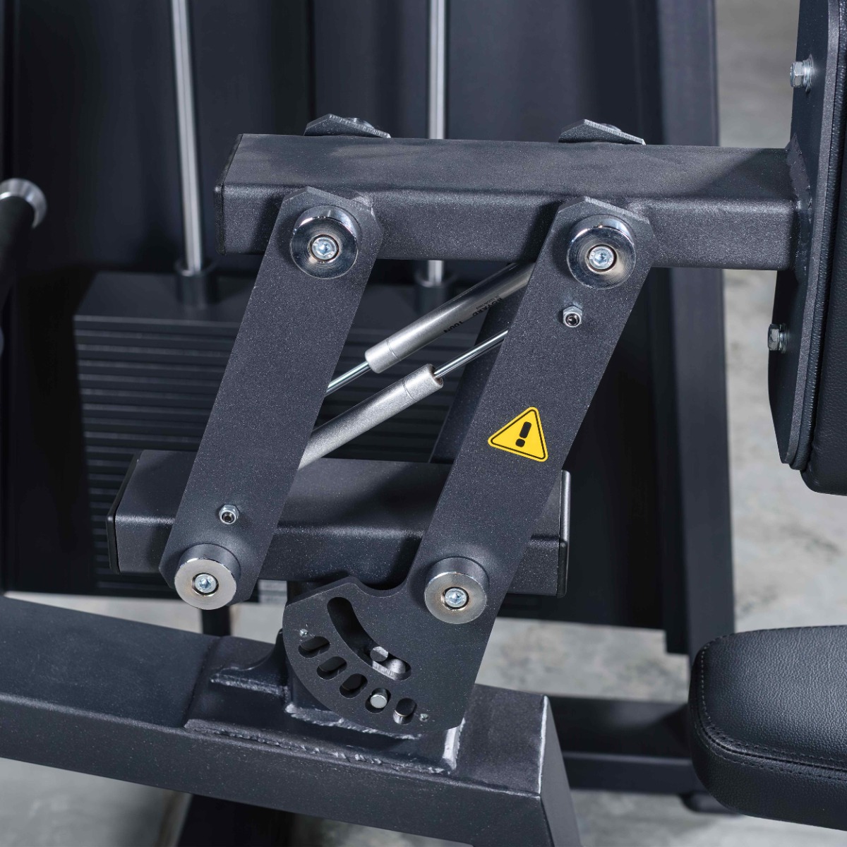 Система нагрузки – тросовая, с весовым стеком 100 кг. Весовой стек выполнен из стальных плит с порошковым покрытием.
