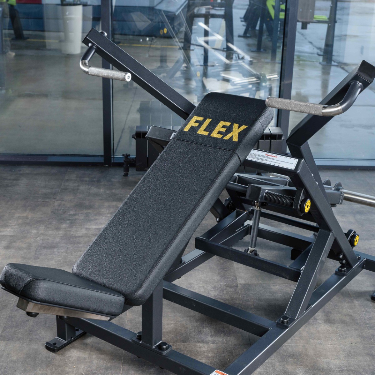 Спинка прямоугольной формы длиной 830 мм и шириной 250 мм установлена под оптимальным углом, обеспечивающим естественную биомеханику жима и поддержку позвоночника. Поверхность обтянута износостойкой искусственной кожей, на центральной части размещена декоративная накладка с вышивкой логотипа FLEX.
