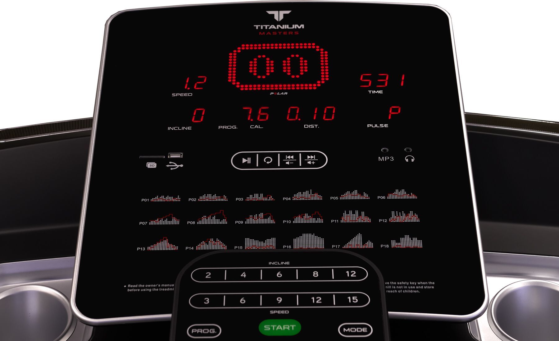 программный профиль, время, дистанция, скорость, калории, пульс, жироанализатор Body Fat