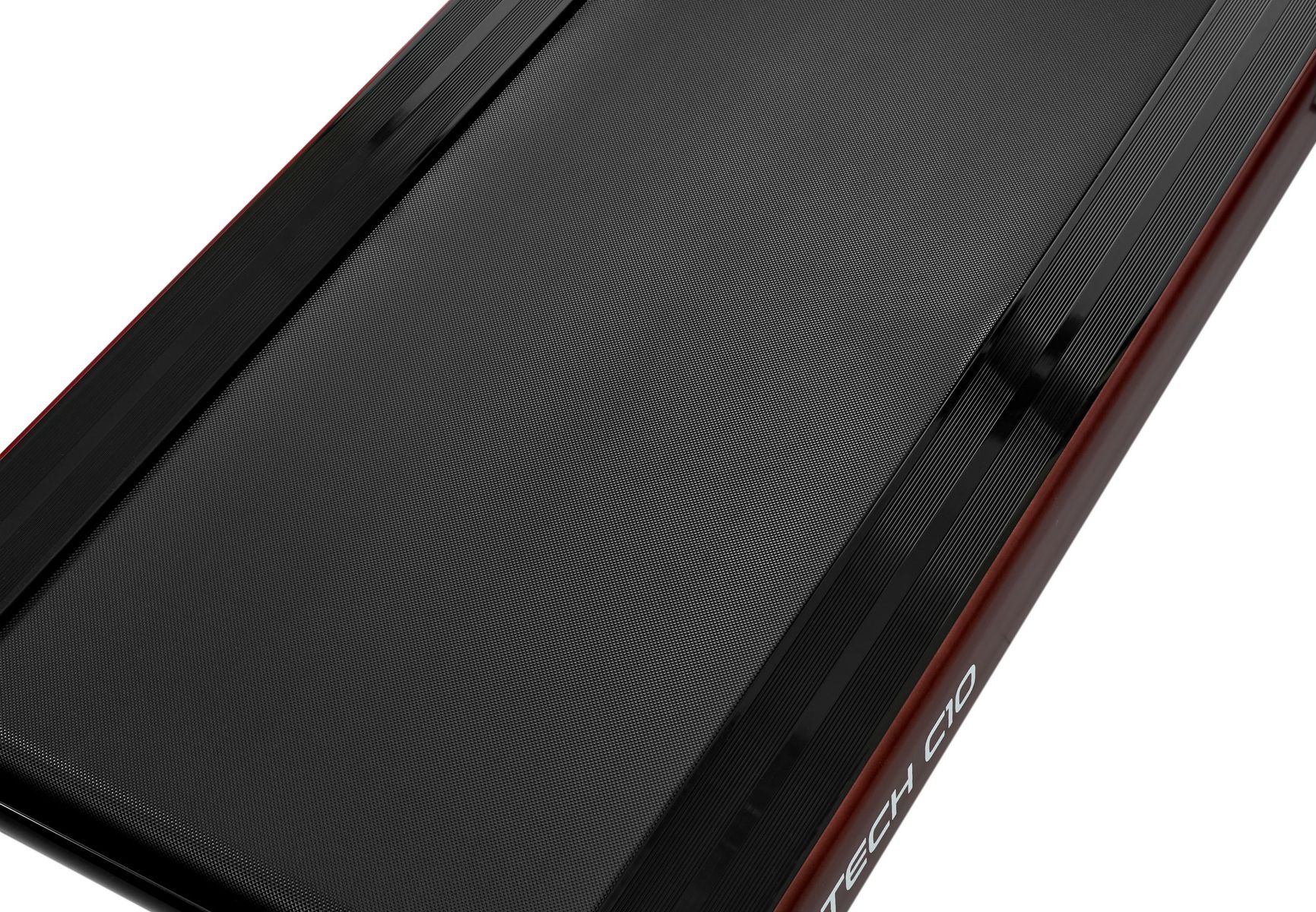 Высокотехнологичные беговые дорожки от немецкого бренда Titanium – это уникальное сочетание передовых технологий, функционала, качества и дизайна. Вся разработка продукта, от изначальной концепции и инжиниринга до биомеханического тестирования и систем контроля качества, проведена головным подразделением компании, расположенным в немецком Гендельберге. Здесь же созданы и дизайны различных серий, в основе которых лежит лаконичность и удобство использования. Вся продукция Titanium выполнена с традиционной немецкой педантичностью и внимательностью к деталям. Titanium Masters Slimtech C10 (Coffee) относится к классу компактных беговых дорожек последнего поколения и ориентирована на самый широкий круг пользователей. В ней реализованы сразу несколько передовых решений – от конструкции рамы и технических характеристик до дизайна и цветовых решений. При создании рамы Slimtech C10 инженеры Titanium руководствовались тремя соображениями – компактностью, трансформируемостью и безопасностью. Компактность – это, в первую очередь, удобство хранения. Толщина беговой дорожки в сложенном виде составляет уникальные 12 см, ее можно положить под кровать, в кладовку или любое иное место с ограниченным пространством. Трансформируемость, напрямую связанная с безопасностью, позволяет использовать Slimtech C10 в трех различных модификациях. В первом случае это полная сборка с поручнями, и тут дорожка внешне и функционально больше похожа на классический вариант тренажера. Этот вариант подойдет тем, кому важно сохранять максимальную устойчивость и безопасность при занятиях – к примеру, людям пожилого возраста. Также такая сборка предпочтительна для тех, кто тренируется на скоростях больше 10 км/ч – рукоятки всегда подстрахуют при потере равновесия. Второй вариант сборки похож на первый, но без поручней. Он реализует все возможности Slimtech C10 в плане компактного хранения – в этом режиме дорожка складывается до 12 см по толщине. Если у тренажера нет стационарного места для тренировки и его нужно хранить в максимально компактном состоянии – этот вариант как раз для этого. При этом стойка консоли по-прежнему находится в вертикальном положении и подстрахует на случай потери равновесия. Механизм складывания прост в использовании и позволяет собрать или разобрать тренажер за несколько секунд, а само перемещение осуществляется при помощи 2-х транспортировочных роликов. Последний вариант сборки – стойка консоли находится в горизонтальном положении на одном уровне с рамой. В этом случае дорожка не требует вообще никаких физических манипуляций. Это вариант наименее безопасный, предназначен исключительно для ходьбы и ограничен максимальной скоростью в 4 км/ч. Для управления в этом режиме используется пульт дистанционного управления. Форм-фактор, в котором выполнена Titanium Masters Slimtech C10 – это не только совершенство технологий, но и выразительный дизайн в стиле кинетического хай-тека. Лаконичный внешний вид с закругленными формами создает ощущение премиального продукта, который гармонично вписывается в любые интерьеры, включая самые изысканные и дорогие. Дополняют форм-фактор специальные цвета окраски – более спокойный коричневый кофейного оттенка и выразительный красный. По своим характеристикам Slimtech C10 ориентирована на массовый сегмент пользователей начального и продви