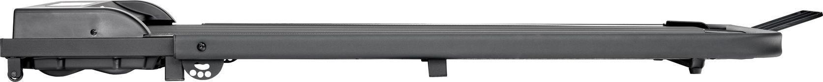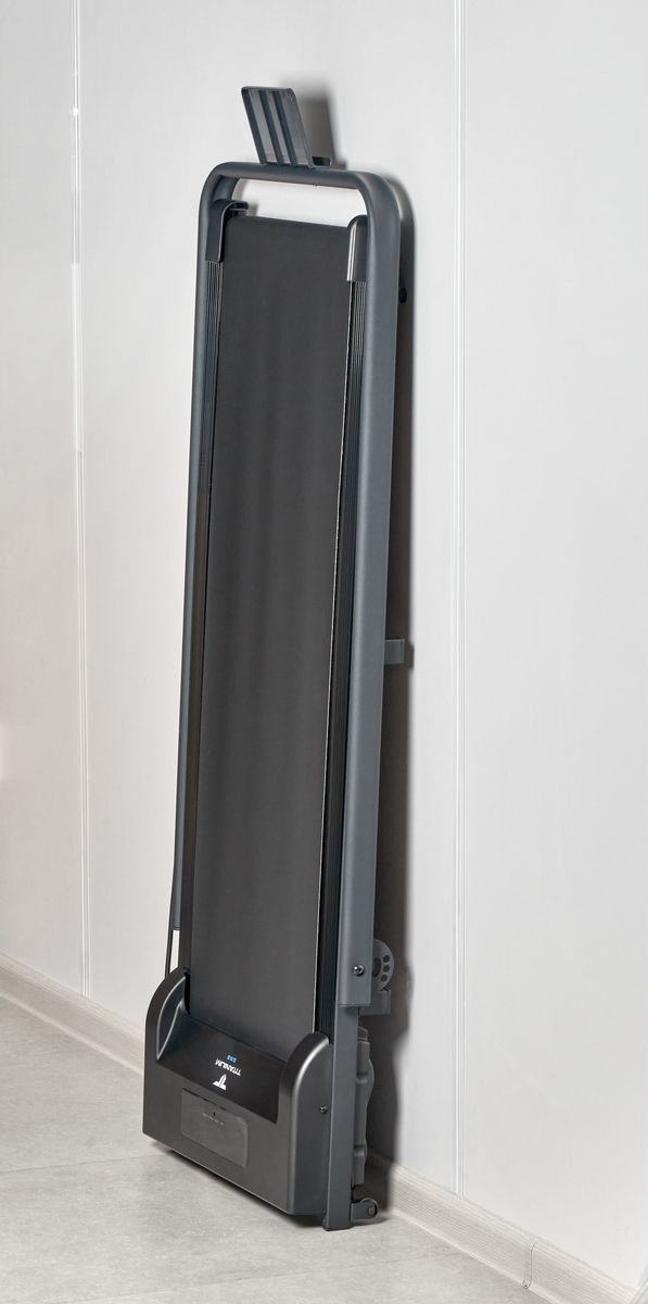Безусловными преимуществами электрической беговой дорожки Titanium One T22 SH APP являются компактные размеры и демократичная стоимость. Несмотря на то, что тренажер относится к базовому классу оборудования, он закрывает все основные потребности пользователей начального и среднего уровня. За движение отвечает надежный двигатель американской Leeson Electric мощностью 1.25 л.с. постоянного тока. Скорость регулируется в диапазоне от 1 до 8 км/ч - на максимуме этого вполне хватает для бега трусцой. Размеры бегового полотна составляют 100 см. в длину и 38 см. в ширину - этого достаточно для ходьбы и бега с небольшой скоростью. Несмотря на сравнительно небольшие размеры бегового полотна, тренироваться на Titanium One T22 SH APP может пользователь любого роста вплоть до 190 см, но есть ограничение по максимальному весу пользователя - 90 кг. Если вес превышает это значение, следует обратить внимание на модели уровнем выше. Несмотря на отсутствие специальных элементов амортизации дорожку нельзя назвать жесткой – парафинированная дека толщиной 1,5 см обладает неплохими демпфирующими свойствами. Для создания дополнительной мягкости лучше заниматься на ковре или специально предназначенном для этого полиуретановом коврике для фитнес оборудования. Titanium One T22 SH APP требует минимум места для использования и хранения. В рабочем состоянии размер тренажера составляет 135 см. в длину и 56 см. в ширину – даже в самой малогабаритной квартире легко найдется место для тренировки. В сложенном виде толщина беговой дорожки составляет всего 12 см., ее можно положить под кровать или прислонить к стене в горизонтальном виде. Стойки консоли крепятся на 2-ух винтах-барашках, процесс сборки и разборки займет около минуты. Учитывая вес дорожки всего в 17 кг. и наличие транспортировочных роликов, переместить тренажер не составит труда даже хрупкой девушке. Тренироваться на беговой дорожке можно как с поручнями, так и без. Поручни помогают не только удерживать равновесие - они также оборудованы держателем для мобильных устройств, куда можно установить смартфон или планшет. Это приятная опция - сериал или музыка отлично помогают справиться с рутиной и однообразием тренировок. Тренировочный компьютер представляет собой LED дисплей c яркими красными светодиодами. Он встроен в кожух моторного отсека и показывает такие параметры как скорость, дистанцию, время и сожженные калории. Здесь также есть 3 программы обратного отчета, когда тренировка заканчивается по достижении целевого показателя (дистанция, время или калории). Управление всеми функциями консоли происходит через пульт дистанционного управления. В консоль дорожки установлен Bluetooth модель для интеграциями с рядом приложений через телефон. Первое приложение – Fitshow – предоставляет набор дополнительных тренировочных программ, сохраняет и анализирует статистику. Здесь можно соревноваться с другими пользователями, создать сообщество и добавить друзей, поделиться результатами в соцсетях. При желании можно управлять тренажером прямо со своего смартфона. Если Вы занимаетесь спортом на улице – отлично, данные не пропадут и синхронизируются с результатами тренировки на беговой дорожке. Второе высокотехнологичное приложение Zwift является по сути симулятором виртуальной реальности и ориентировано на велосипедный спорт, бег и тренировки на