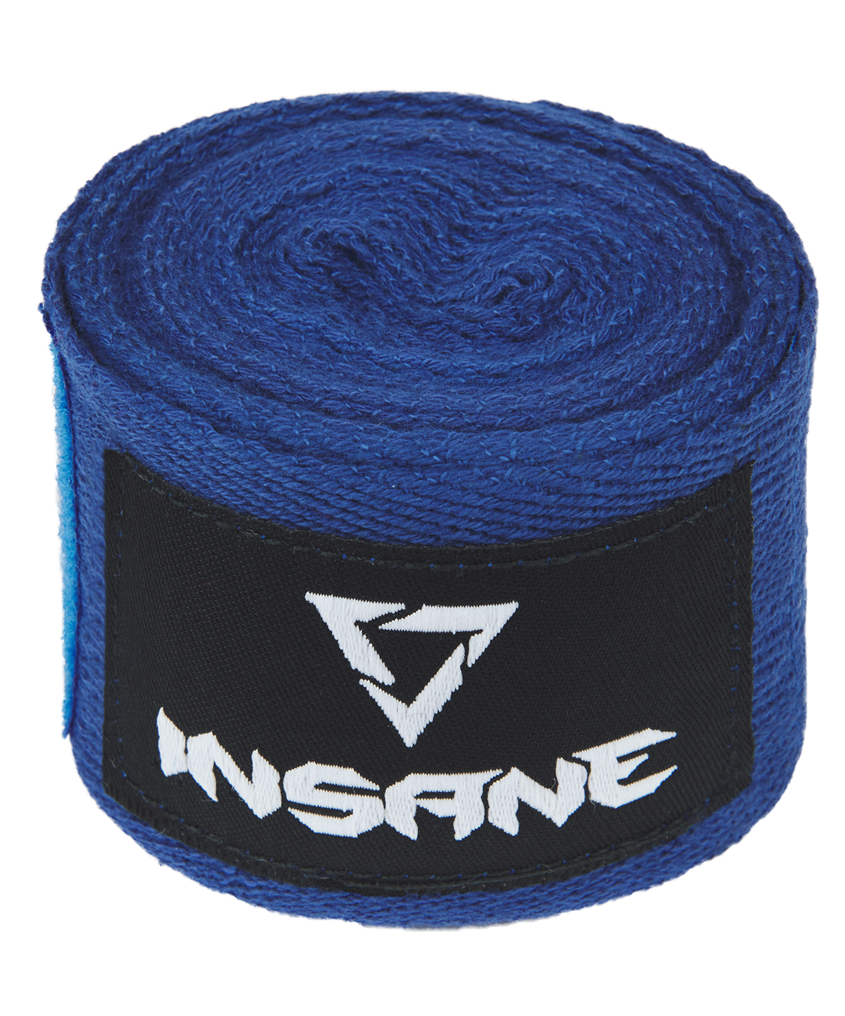 Боксерский бинт INSANE CRUSHER 4,5 м – классический аксессуар для защиты костей кистей и запястий спортсмена от травм во время тренировок и боев. Изделие выполнено из 100% хлопка, который не тянется и гарантирует плотное прилегание. Материал отлично впитывает пот, увеличивая срок службы боксерских перчаток. Бинт оптимален для начинающих и продолжающих спортсменов.\nCRUSHER надежно фиксируются на руке качественной липучкой, в модели предусмотрена петля для большого пальца, которая помогает упростить намотку. Бинты не только снижают риск травм, амортизируя удары, но и обеспечивают плотную посадку боксерских перчаток. Это позволяет приобретать перчатки с небольшим запасом в размере. Бинты выполнены в практичном черном цвете. В комплекте идет удобная сумочка для хранения и транспортировки аксессуара.\nПреимущества:\n100% хлопок;\nНе тянутся;\nУдобная фиксация липучкой;\nСтильный дизайн;\nСумочка для хранения в комплекте;\nПринт на бинте.\nХарактеристики:\nМатериал: 100% хлопок\nДлина бинта, м: 4,5\nШирина бинта, см: 5\nЦвет: красный\nКоличество в упаковке, шт.: 2\nТип упаковки: сумка-переноска\nПроизводство: Пакистан