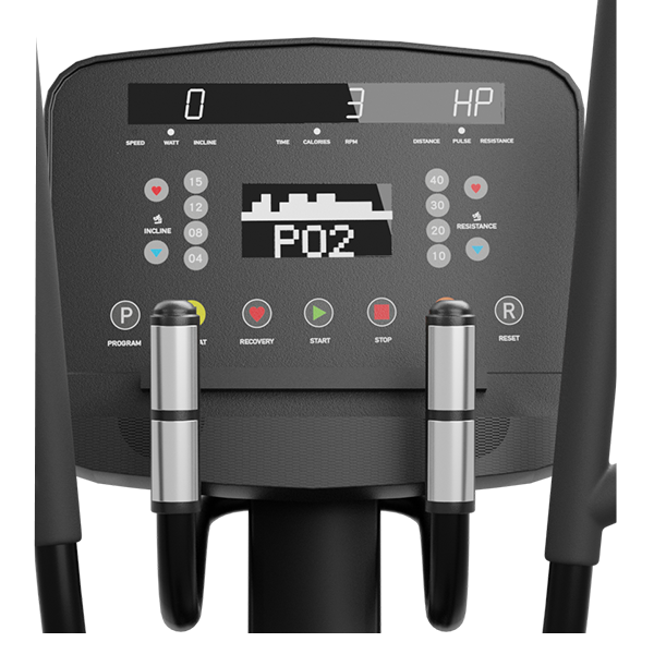 Показания консоли - время / дистанция / скорость / калории / пульс / уровень нагрузки