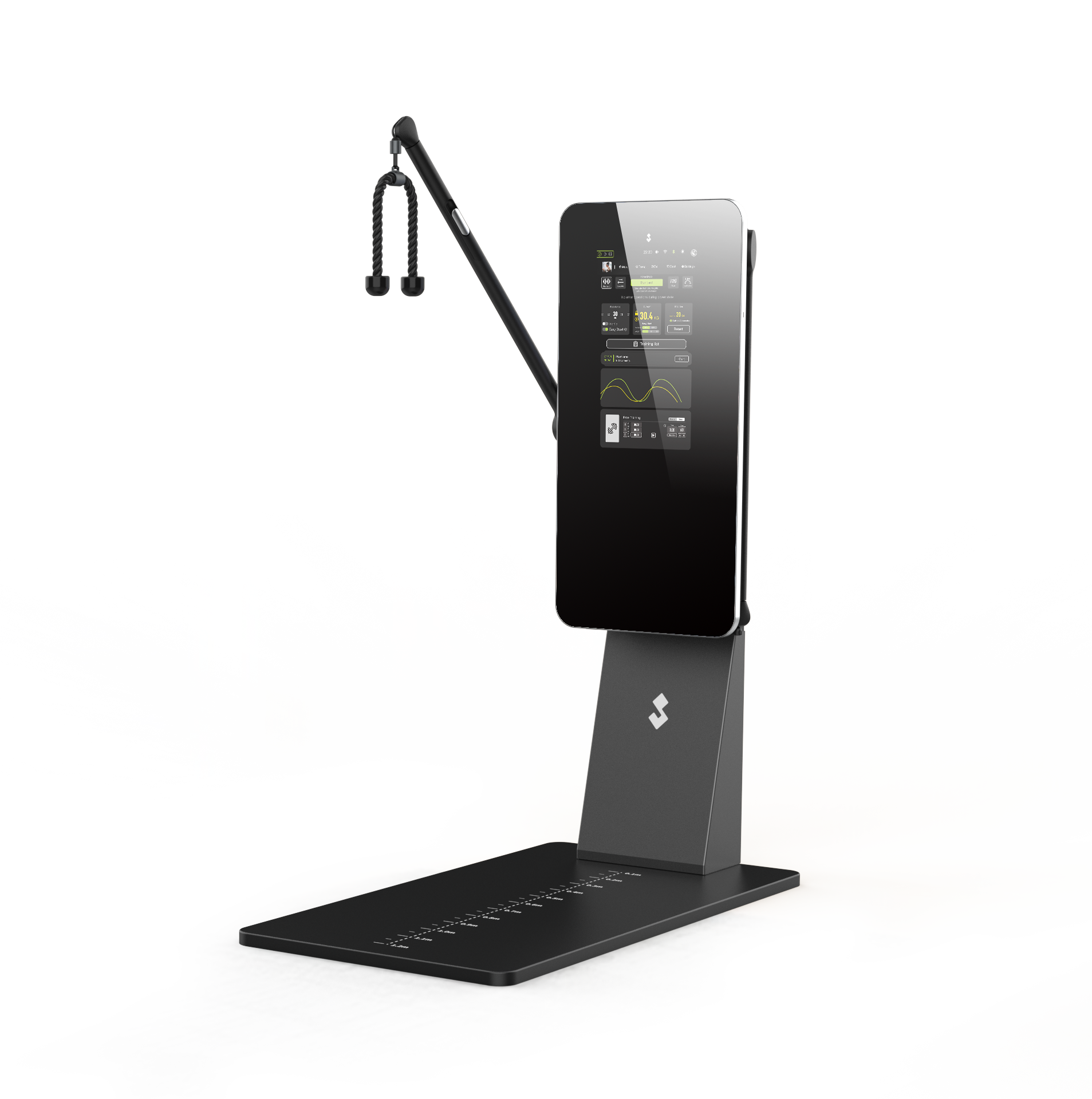 Система обеспечивает плавное сопротивление от 4 до 100 кг через тросовый механизм с помощью моментных двигателей — больше никаких тяжелых физических блинов и дисков.