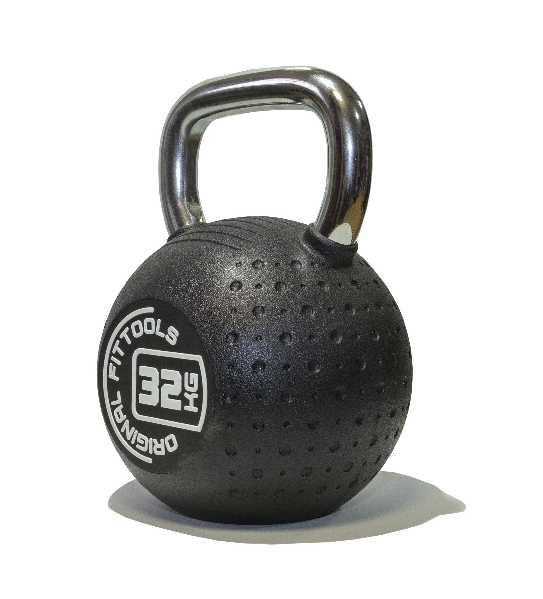 Премиальная гиря 32 кг с хромированной ручкой и высококачественным полиуретановым покрытием.