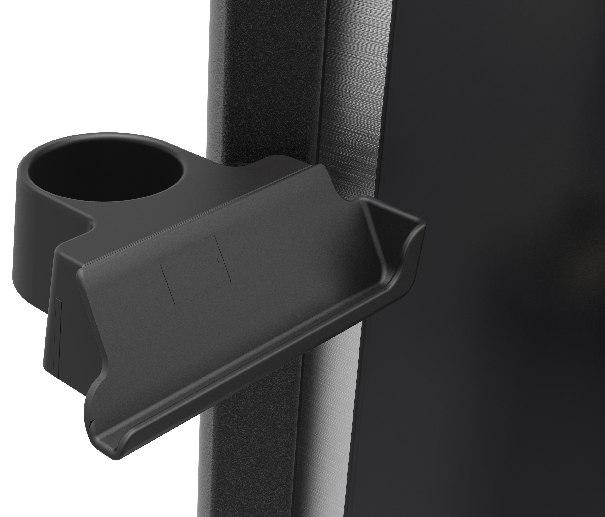 - Дизайн системы хранения аксессуаров полностью ориентирован на клиента, эргономичные ячейки для хранения бутылки и полочка для телефона или планшета находятся на расстоянии вытянутой руки.