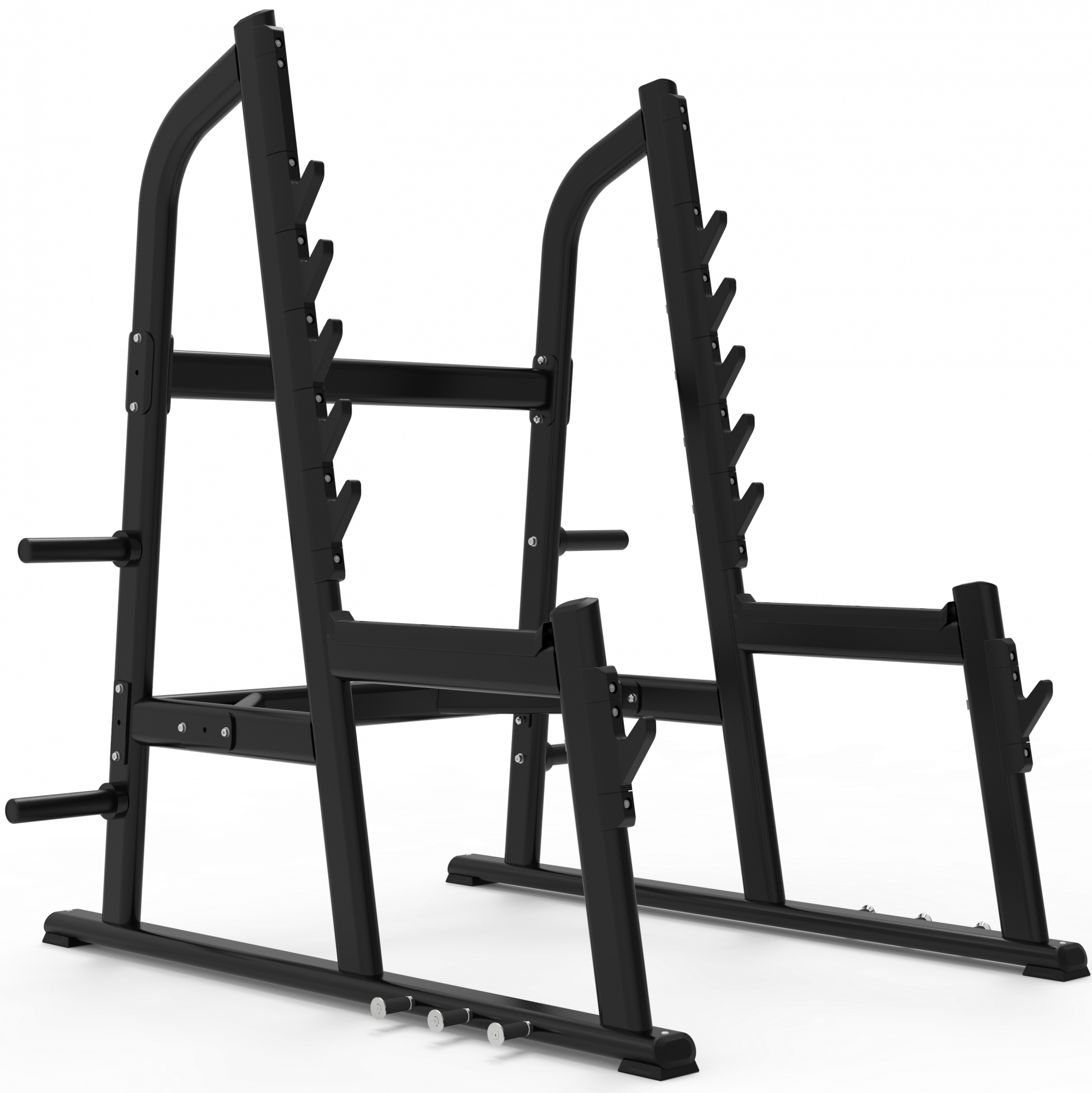 - Вертикальные стойки с шестью точками фиксации штанги.