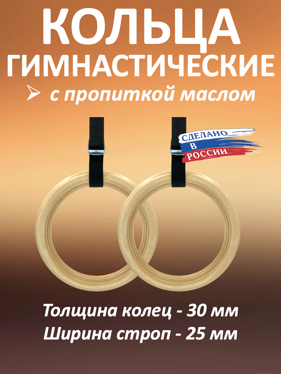 Кольца гимнастические из высококачественной влагостойкой березовой фанеры с масляной пропиткой на текстильных регулируемых стропах с фиксирующими пружинными замками.