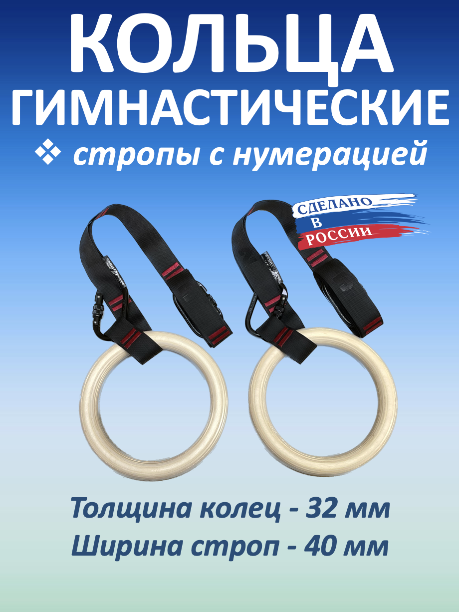 Кольца гимнастические из высококачественной влагостойкой березовой фанеры на текстильных регулируемых стропах с карабинами.