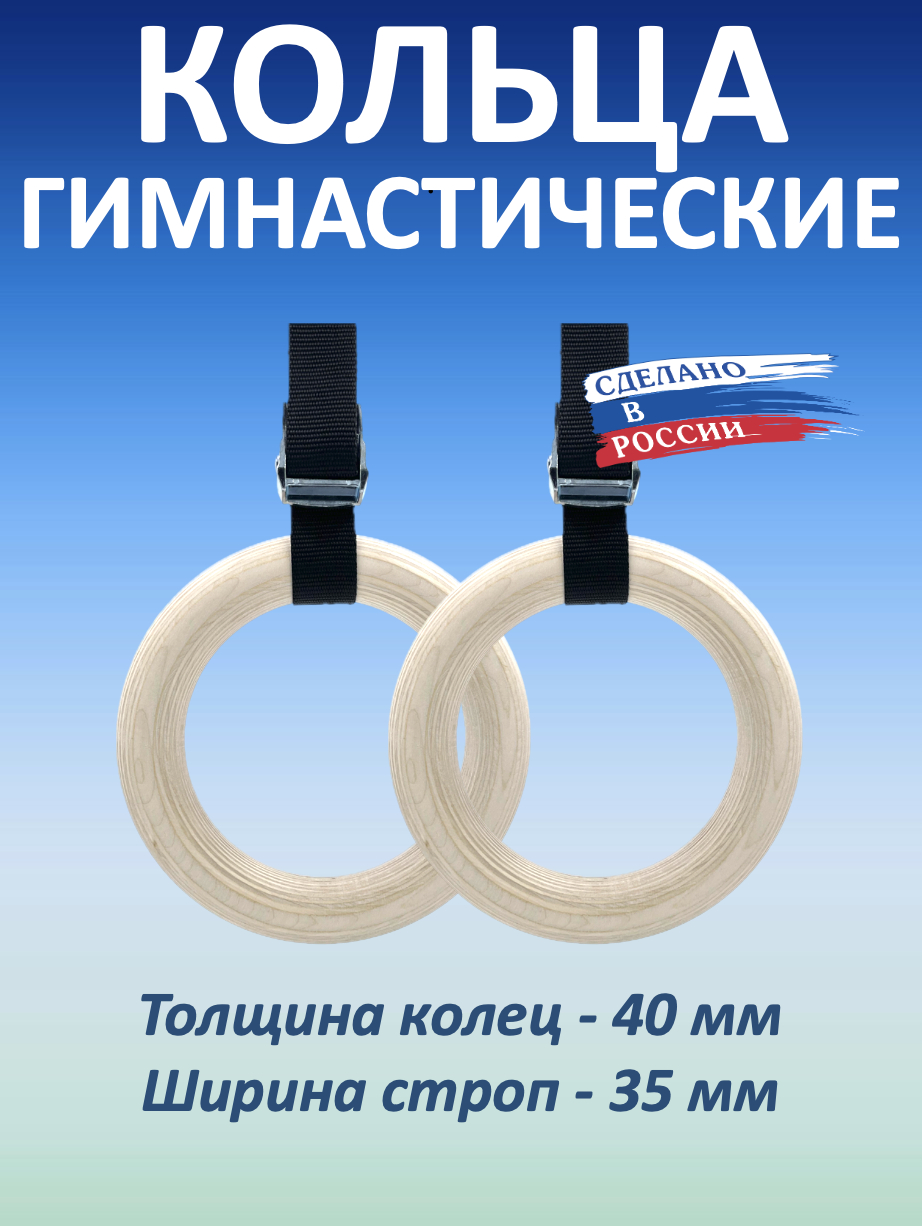 Кольца гимнастические из высококачественной влагостойкой березовой фанеры на текстильных регулируемых стропах с фиксирующими пружинными замками.