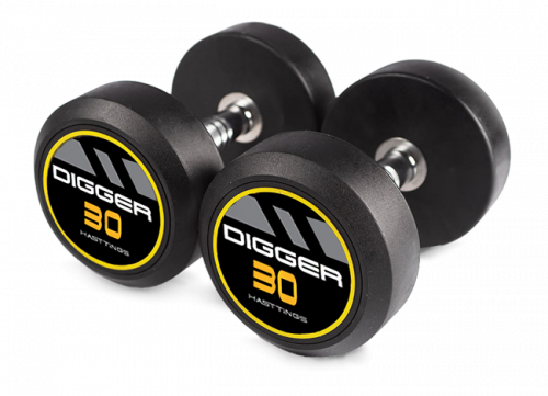 Цельная конструкция[Большие стальные головки имеют цельнолитую конструкцию, покрыты равномерным слоем полиуретана. Материал долговечен, не имеет постороннего запаха.],
