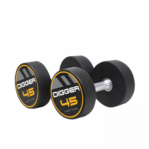 Цельная конструкция[Большие стальные головки имеют цельнолитую конструкцию, покрыты равномерным слоем полиуретана. Материал долговечен, не имеет постороннего запаха.],