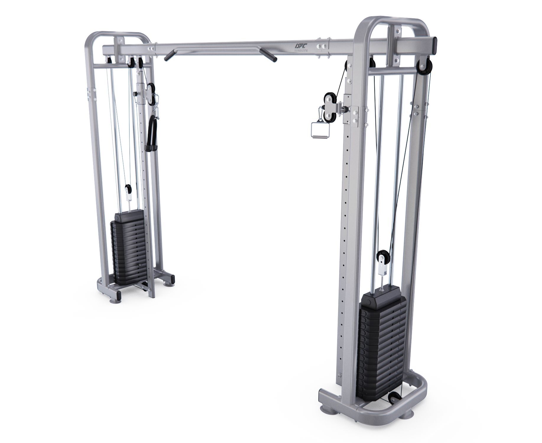 Силовые стеки весом по 90 кг входят в комплектацию, а вес каждой пластины равен 6 кг. Плавность хода стеков обеспечивают ролики на подшипниках. Конструкция тренажёра выполнена из высококачественной стали и обеспечивает его устойчивость и надёжность.