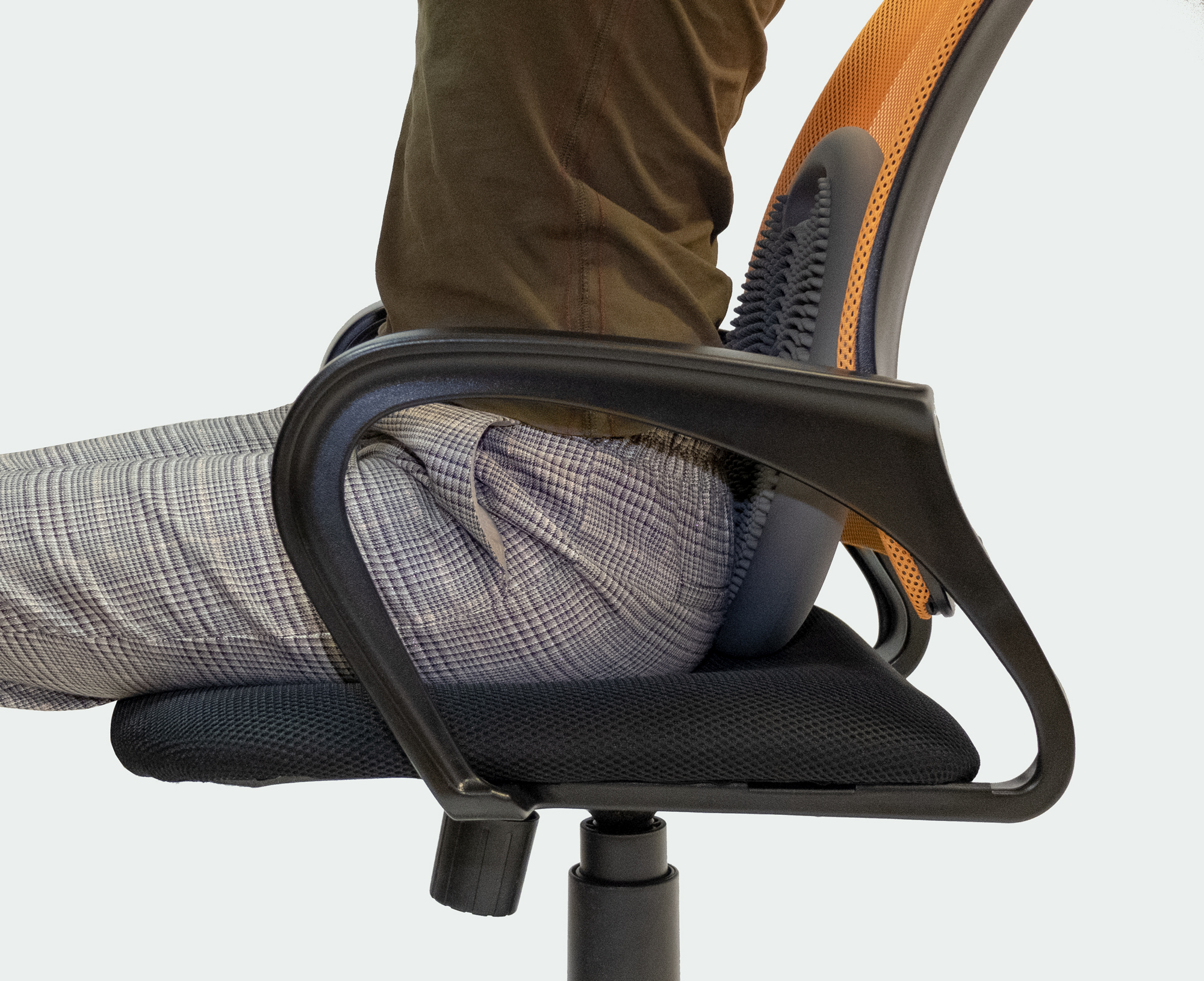 Она позволяет сидеть прямо в комфортном для позвоночника положении, тренировать мышцы спины, также позволяет эффективно тренировать баланс. Сидение на балансировочной подушке во время работы способствует минимизации негативного эффекта от длительного нахождения в сидячем положении.