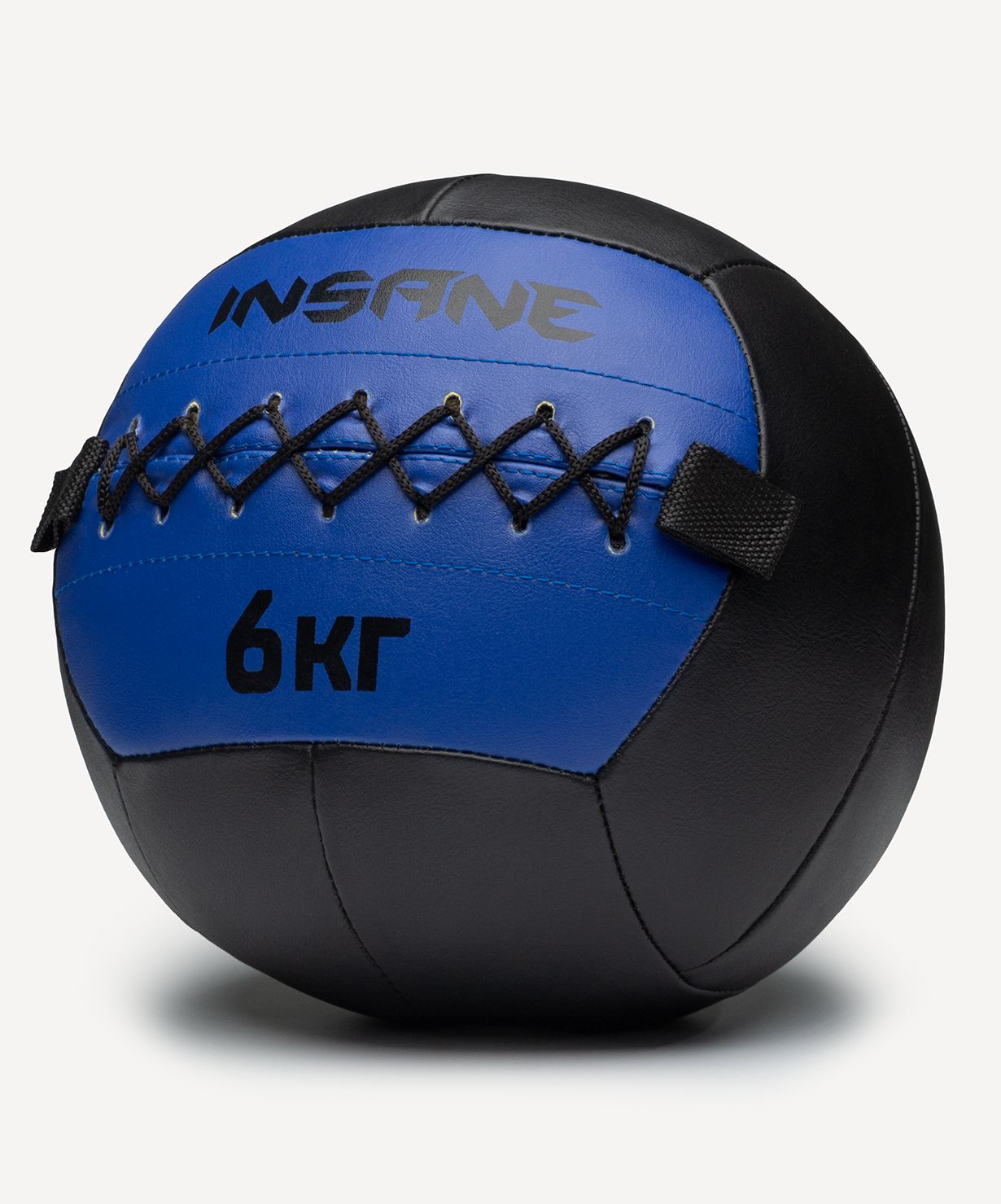 Медбол бренда INSANE – спортивный снаряд, который будет актуален для атлетов любого уровня подготовки. Он применяется для тренировки силы и координации, а также для выполнения упражнений, направленных на развитие баланса и гибкости.\nМедбол INSANE IN24-WB100 изготовлен из качественных материалов. Верхний слой сделан из износостойкого полиуретана, который не деформируется при ударах и падениях. Поверхность не скользит в руках и позволяет использовать снаряд даже во время высокоинтенсивных нагрузок. Для большей надежности предусмотрен слой из полиэтилена, который закрывает промежуточную прослойку из полипропиленового хлопка. Полипропиленовый хлопок позволяет медболу сохранять свою форму и быстро возвращаться в первоначальное состояние после деформации. Внутреннее наполнение состоит из металлической крошки, которая не пылит и не высыпается сквозь слои материалов. Долговечность снаряда обеспечивают прочные двойные швы из нейлоновых нитей. Для подъема и перемещения предусмотрены удобные ручки в виде двух петель.\nМедицинбол позволяет заменить различный спортинвентарь: занятия с данным мячом помогают улучшить общую выносливость как у взрослого, так и подростка, укрепить мышцы рук и спины, выработать быструю реакцию. Упражнения с набивным мячом положительно влияют на всю опорно-двигательную систему. Вес снаряда необходимо подбирать исходя из собственных физических возможностей и рекомендаций тренера.\nМедбол выполнен в ярком дизайне, каждый вес имеет собственную расцветку и диаметр, поэтому в коллекции легко найти нужный снаряд.\nВнимание! Данный медицинбол не предназначен для регулярных бросков и ударов об пол.\nПреимущества:\nУдобные ручки-петли для подъема и перемещения;\nНе деформируется при ударах и падениях;\nНескользящая поверхность;\nМногослойная структура;\nНаполнитель из долговечной металлической крошки;\nПрочные швы;\nЯркий дизайн.\nХарактеристики:\nЦвет: черный/синий\nВес, кг: 6\nВнешний материал: полиуретан\nВнутренний материал: полиэтилен\nНаполнитель: металлический песок, полипропиленовый хлопок\nДиаметр, см: 25\nПроизводство: Китай