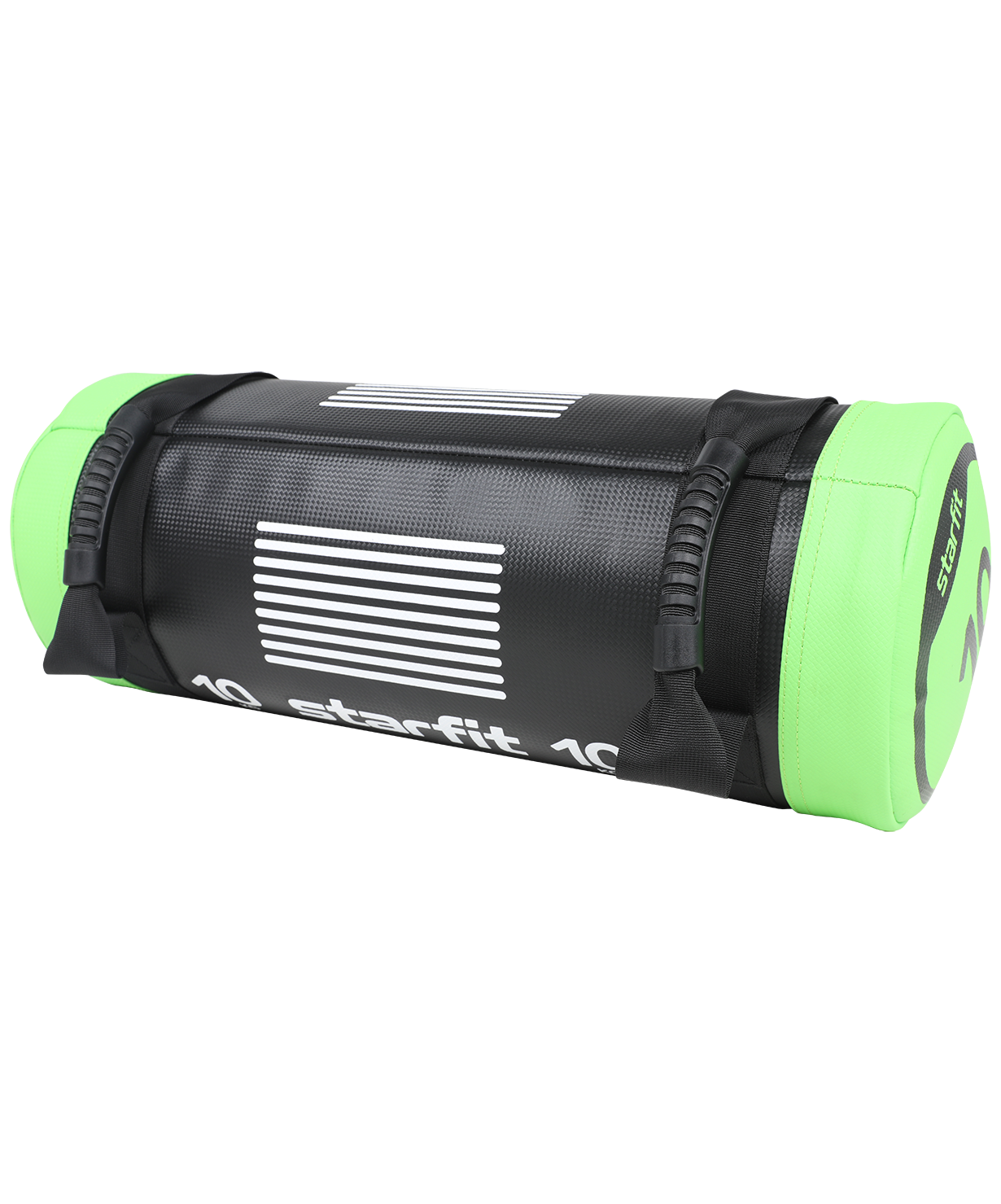 Мешок утяжелитель WT-601 от Starfit - многофункциональный тренажер для развития и укрепления мышц всего тела. Sandbag - прекрасная альтернатива тренировкам со штангами, гантелями и другими стандартными весами. Разные ручки создают возможность для разнообразных хватов, что делает тренировку более функциональной, а плотный PVC-материал не дает мешку деформироваться при выполнении различных упражнений и бросков. Сэндбэг устойчив к износу - прочный внешний чехол и надежно прошитые крепкие ручки обеспечивают долговечность снаряда.\nТренировка с мешком-утяжелителем укрепляет сердечно-сосудистую систему, помогает привести мышцы в тонус, развить выносливость, силу и взрывную скорость, а также способствует наращиванию мышечной массы и улучшению общего состояния организма. Сэндбэг рекомендован для занятий фитнесом и функциональным тренингом.\nПреимущества:\nУстойчив к износу;\nПомогает разнообразить тренировки;\n3 ручки для различных хватов.\nХарактеристики:\nМатериал: поливинилхлорид\nВес утяжелителя, кг: 10\nНаполнитель: железная стружка\nЦвет: черный/зеленый\nДлина, см: 55\nШирина, см: 22\nВес без упаковки, кг: 10\nТип упаковки: индивидуальная экспортная коробка\nКол-во в упаковке, шт.: 1