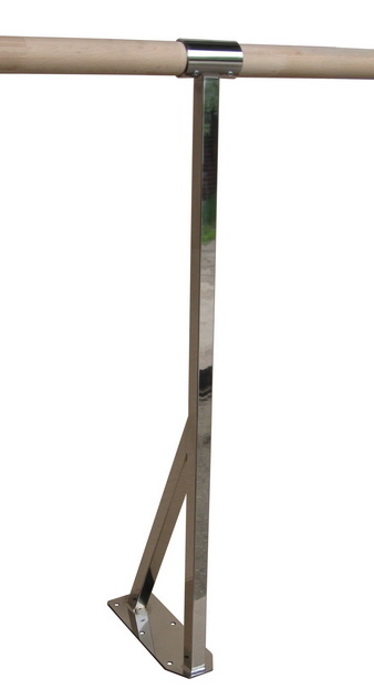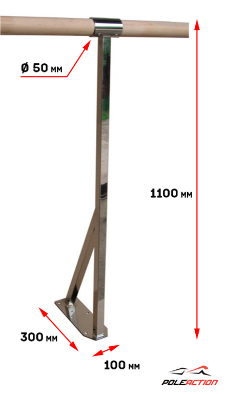 Конструкция стойки балетного станка изготавливается из нержавеющей трубы 30х30 мм. Крепежная пластина изготовлена из нержавеющей листовой стали толщиной не менее 3 мм. Использование такого толстого металла не случайно. Он обеспечивает необходимую прочность и долгий срок службы балетных станков не только дома, но и в танцевальных и балетных классах.