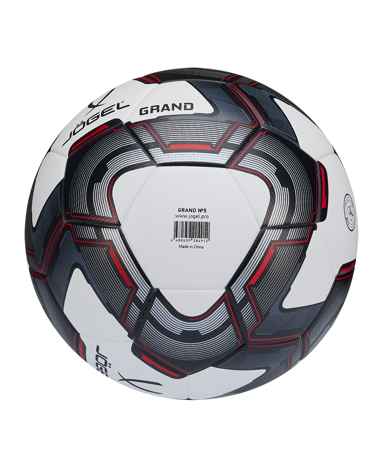 Категория: Матчевый\nКоллекция: 2024/2025\nЛинейка: Pro Training\nМяч Grand от Jögel – лидер продаж в линейке Pro Training, мяч матчевого уровня. Выполнен по технологии термосклеивания THB Technology, благодаря чему обладает идеально круглой формой, герметичен и практически не пропускает влагу внутрь, а давление в мяче распределяется равномерно. Поверхность мяча выполнена из высококачественной синтетической кожи (полиуретан) толщиной 0.2 мм + 3,5 мм Eva. Текстурная поверхность улучшает контроль мяча при любых погодных условиях. Мяч оснащен бутиловой камерой, армированной синтетической нитью, сбалансирован и долго держит воздух в камере.\nРекомендован для тренировок и соревнований профессиональных команд. Традиционная конструкция мяча из 32 панелей. Привлекательный дизайн коллекции 2021/2023 ярко выделяет мячи Jögel на поле. Официальный размер и вес FIFA.\nВнимание: данный мяч поставляется с завода-изготовителя в накачанном виде. Не рекомендуется полностью спускать данные мячи, чтобы не нарушить целостность панелей.\nХарактеристики:\nРекомендованные покрытия: натуральный газон, синтетическая трава, резина, гаревые поля, паркет\nМатериал поверхности: синтетическая кожа (полиуретан) толщиной 0.2 мм + 3,5 мм Eva\nМатериал камеры: бутил\nТип соединения панелей: термосшивка\nКоличество панелей: 32\nРазмер: 5\nВес, г: 410-450\nДлина окружности, см: 68-70\nРекомендованное давление: 0.6-0.8 бар\nМяч поставляется: накачанный\nОсновной цвет: белый\nДополнительный цвет: серый/красный\nПроизводство: КНР