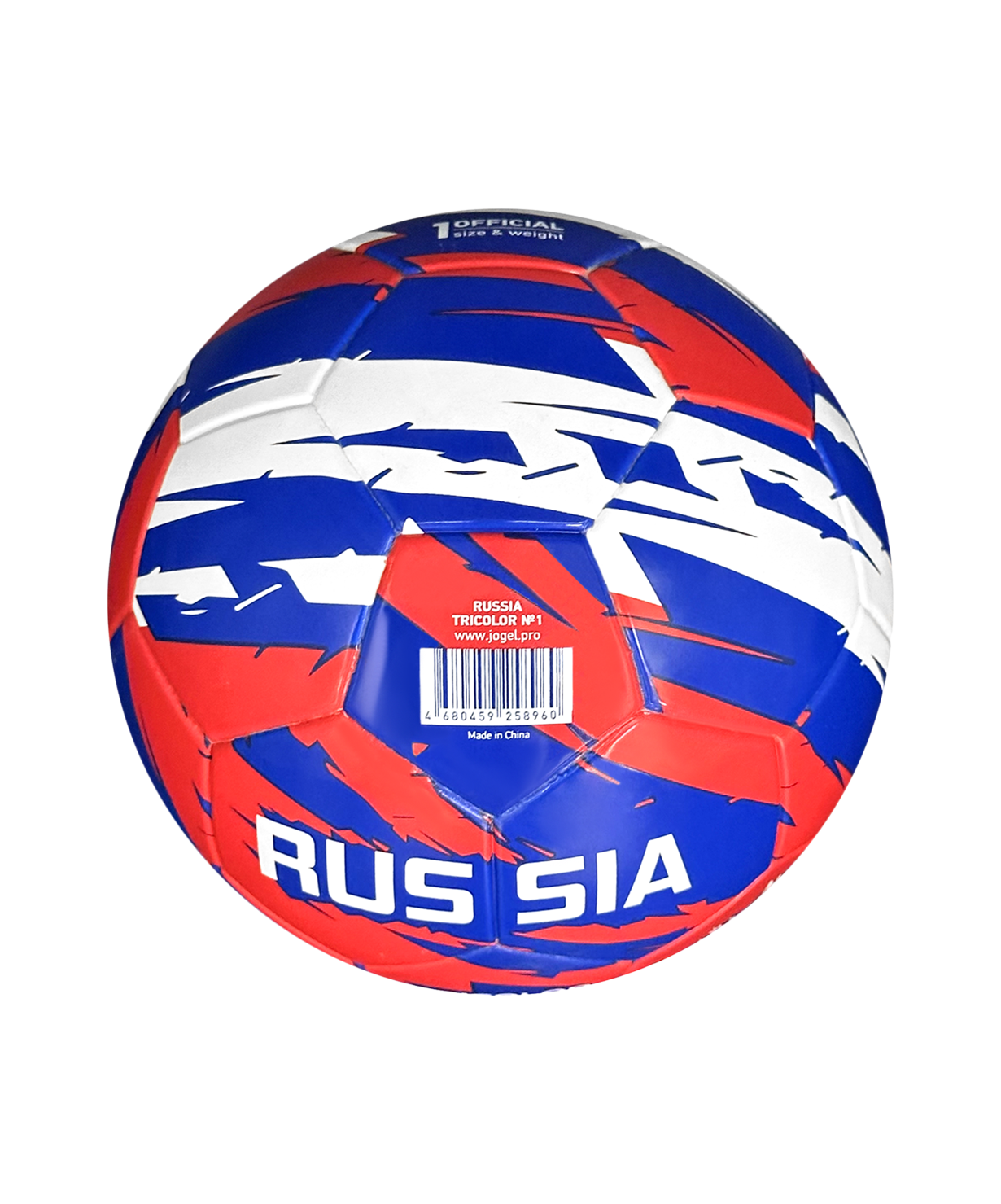 Jögel Tricolor — сувенирный мяч, разработанный совместно с Российским футбольным союзом. Это не только прекрасный подарок для коллекционеров, но и игровой мяч, подходящий для любительских соревнований детей и взрослых. Дизайн вдохновлен флагом России и придется по душе всем любителям футбола и фанатам, которые захотят приобрести данные снаряды в качестве сувенира. Играй, как твои кумиры, поддерживай любимую сборную вместе с Jögel.\nХарактеристики:\nРекомендованные покрытия: натуральный газон, синтетическая трава, резина, гаревые поля, паркет\nМатериал поверхности: термополиуретан\nМатериал камеры: бутил\nТип соединения панелей: клееный\nКоличество подкладочных слоев: 2\nКоличество панелей: 32\nРазмер: 1\nВес, гр: 210-230\nДлина окружности, см: 47-49\nМяч поставляется: накаченный\nОсновной цвет: синий\nДополнительный цвет: красный\nПроизводство: КНР