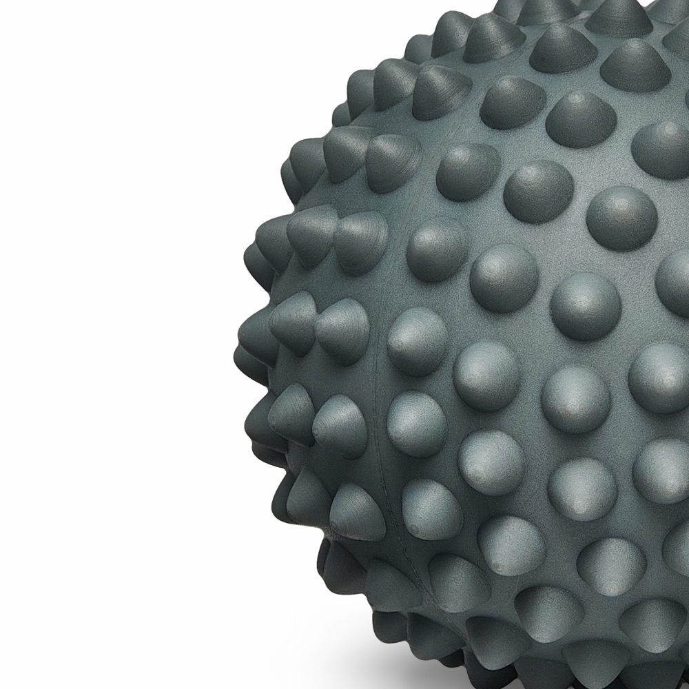 - Шипы: твердые, закругленные - создают сильное, глубокое механическое воздействие, стимулируя мышечные ткани и фасции. Такой тип поверхности позволяет достигать более глубоких слоев мышц, эффективно снимая напряжение и улучшая кровообращение.