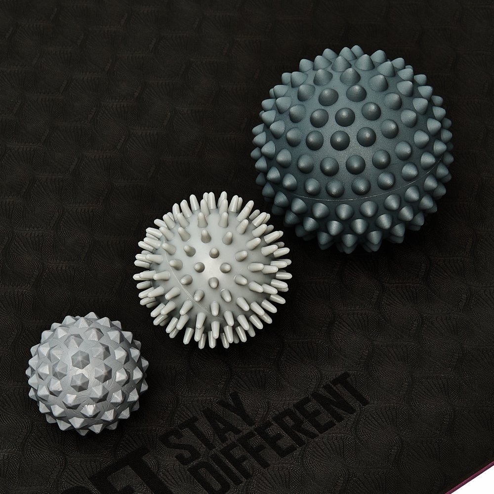 - Жесткие шипы стимулируют акупунктурные точки, что способствует снятию напряжения, улучшению циркуляции крови и восстановлению.