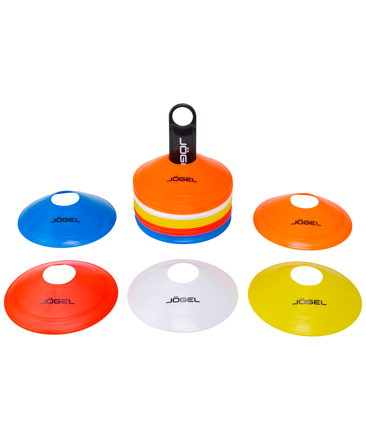 Набор из 50 ярких фишек разных цветов для разграничения пространства во время тренировочного процесса. Выполнены из мягкого, но прочного пластика. Низкий профиль обеспечивает безопасный контакт с фишками. Хорошо держат форму, быстро восстанавливаются после деформации. В комплекте держатель. Характеристики: Материал: полиэтилен Цвет: красный/желтый/оранжевый/синий/белый Вес, г: 1280 Высота фишки, см: 4 Диаметр фишки, см: 19 Габариты, см: 8,5 х 8,5 х 20,5 Количество в упаковке, шт: 50