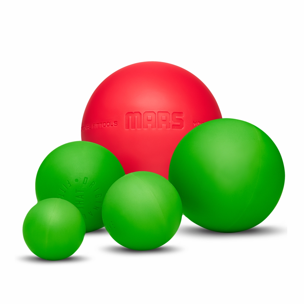 Этот набор включает в себя четыре массажных мяча разных диаметров: 6,3 см, 5 см, 4 см и 3 см. Массажные мячи изготовлены из высококачественного литого силикона. Каждый мяч из комплекта уникален по размеру и предназначен для эффективной и разнообразной проработки мышц и фасций тела. Мячи надежно удерживаются телом и не выскальзывают во время применения.Основные характеристики:
