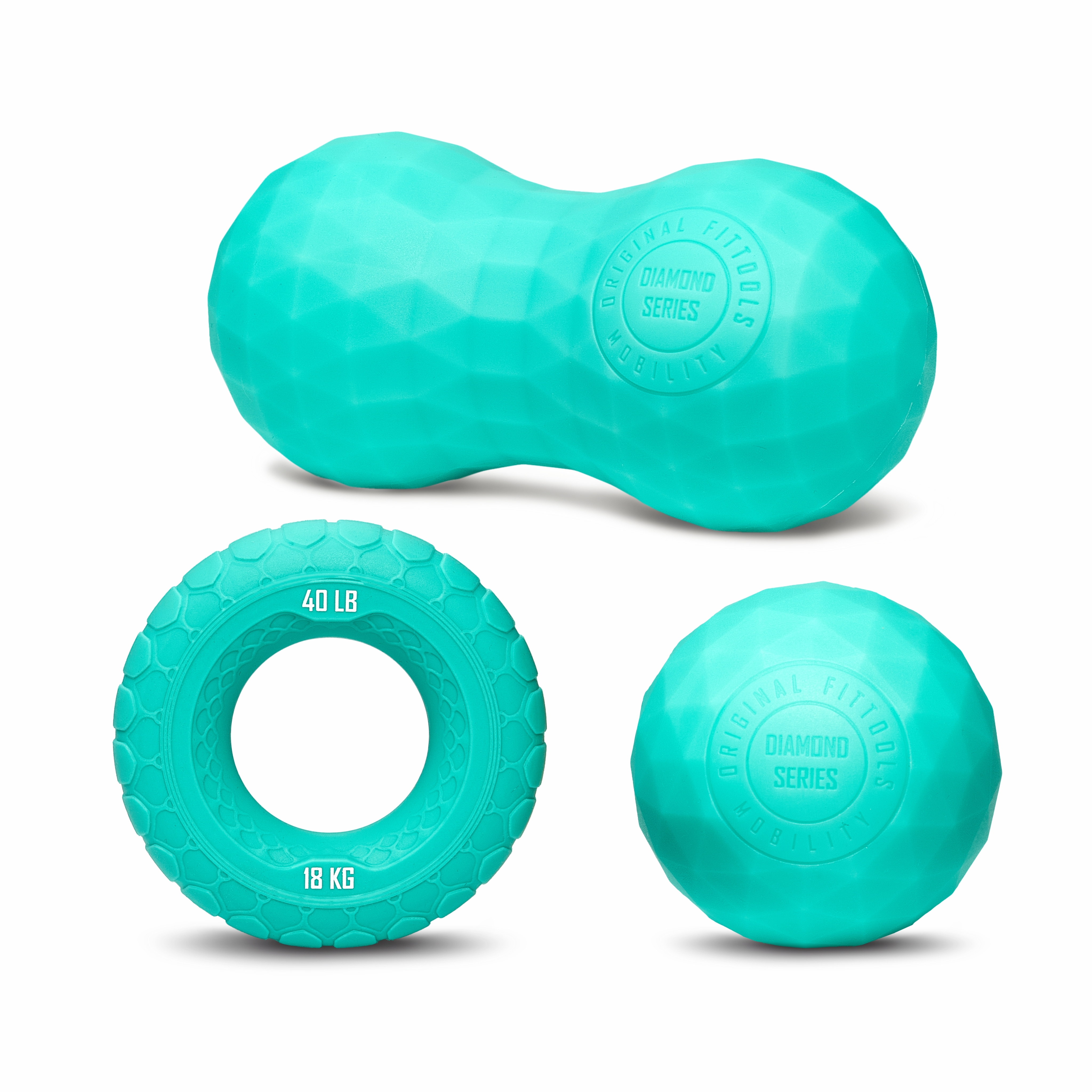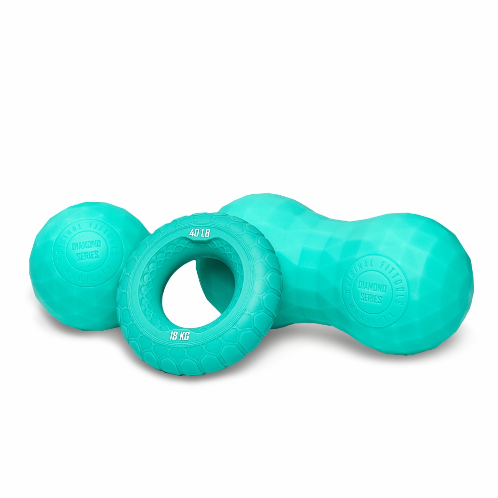 Стильный и функциональный набор предназначен для разнообразных занятий по укреплению мышц, улучшению кровообращения и реабилитации. В комплект входят два массажных мяча — одинарный и сдвоенный, а также кистевой эспандер. Все предметы выполнены из высококачественного литого силикона с многогранной поверхностью, обеспечивающей дополнительно массажное воздействие и превосходные тактильные ощущения. Мячи не проминаются, оставаясь упругими при использовании, что позволяет эффективно прорабатывать различные зоны тела.Основные характеристики: