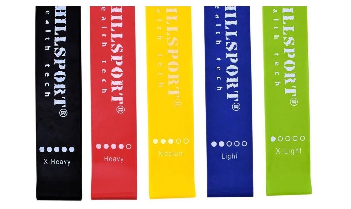 В наборе резинки разного диапазона сопротивления: 4,5 кг, 9 кг, 14 кг, 18 кг и 23 кг