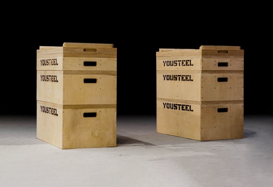 Плинты представляют собой набор специальных деревянных подставок. Набор включает 4 парные секции различной высоты: 60, 150, 300 и 375мм. Общая высота конструкции составляет 885мм, а размер 900х500мм. Каждая секция оснащена парой ручек для переноса и упорами, которые не дают снаряду скатиться. Высокую прочность изделию обеспечивает фанера толщиной 18мм, а верхняя крышка усилена фанерой в 40мм. При желании вы можете комбинировать секции в удобном вам порядке. Вес комплекта: 150кг.