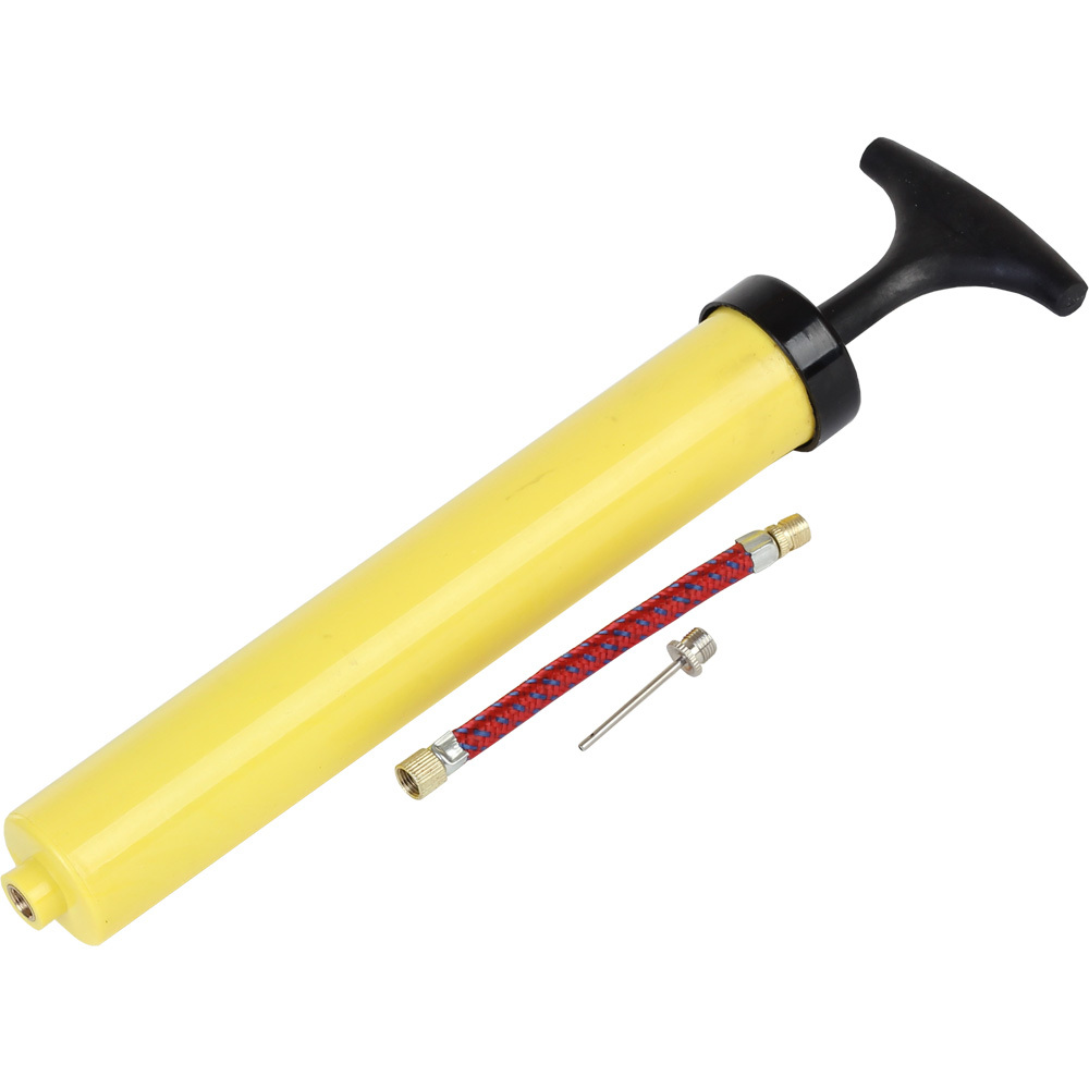 Материал: полипропилен В комплекте: насос (шланг + игла) Длина: 30 см (в вытянутом положении - 46,5 см) Ширина: 3,7 см Примечания: материал наконечников с резьбой - латунь, длина шланга - 11,5 см, диаметр шланга - 1 см Общая длина иглы: 3,8 см Длина иглы: 3 см Диаметр иглы: 2 мм Внешний посадочный диаметр: 7,5 мм Внутренний диаметр: 5 мм Максимальное давление создаваемое насосом: 10 psi (0,7 атм) Рекомендации: для накачивания игровых мячей и иных надувных изделий, оснащенных ниппелем и без него Вес: 115 г