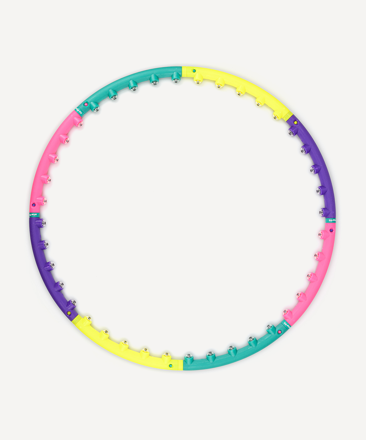 Разборный массажный обруч HH-102 от STARFIT – оригинальный хулахуп из пластика. Тренировки с таким спортинвентарем обеспечивают кардионагрузку, стимулируют кровообращение и увеличивают насыщение клеток кислородом. Этот тренажер для похудения живота и боков позволяет качественно проработать мышцы и нижней части тела, в том числе, ягодичные.\nОбруч для похудения комфортен в использовании, он состоит из пластиковых сегментов, а встроенные элементы оказывают качественный массажный эффект. Обруч хулахуп имеет увеличенный диаметр 98 см и весит 1 кг. Такие параметры позволяют использовать изделие как начинающим, так и опытным спортсменам. Модель разборная, поэтому массажный обруч для похудения просто хранить и перевозить. Этот спортивный инвентарь для фитнеса дома станет прекрасным помощником в формировании красивой фигуры и поможет уменьшить объемы.\nПреимущества:\nУвеличенный диаметр;\nМассажный эффект;\nРазборное изделие.\nХарактеристики:\nТип: массажный\nМатериал: пластик\nДиаметр, см: 98\nКоличество секций, шт: 8\nДлина секции, см: 37\nДиаметр секции, см: 3,1\nДиаметр массажного шарика, см: 3\nРасстояние между массажными шариками, см: 4\nТип упаковки: цветная коробка\nВес без упаковки, кг: 1