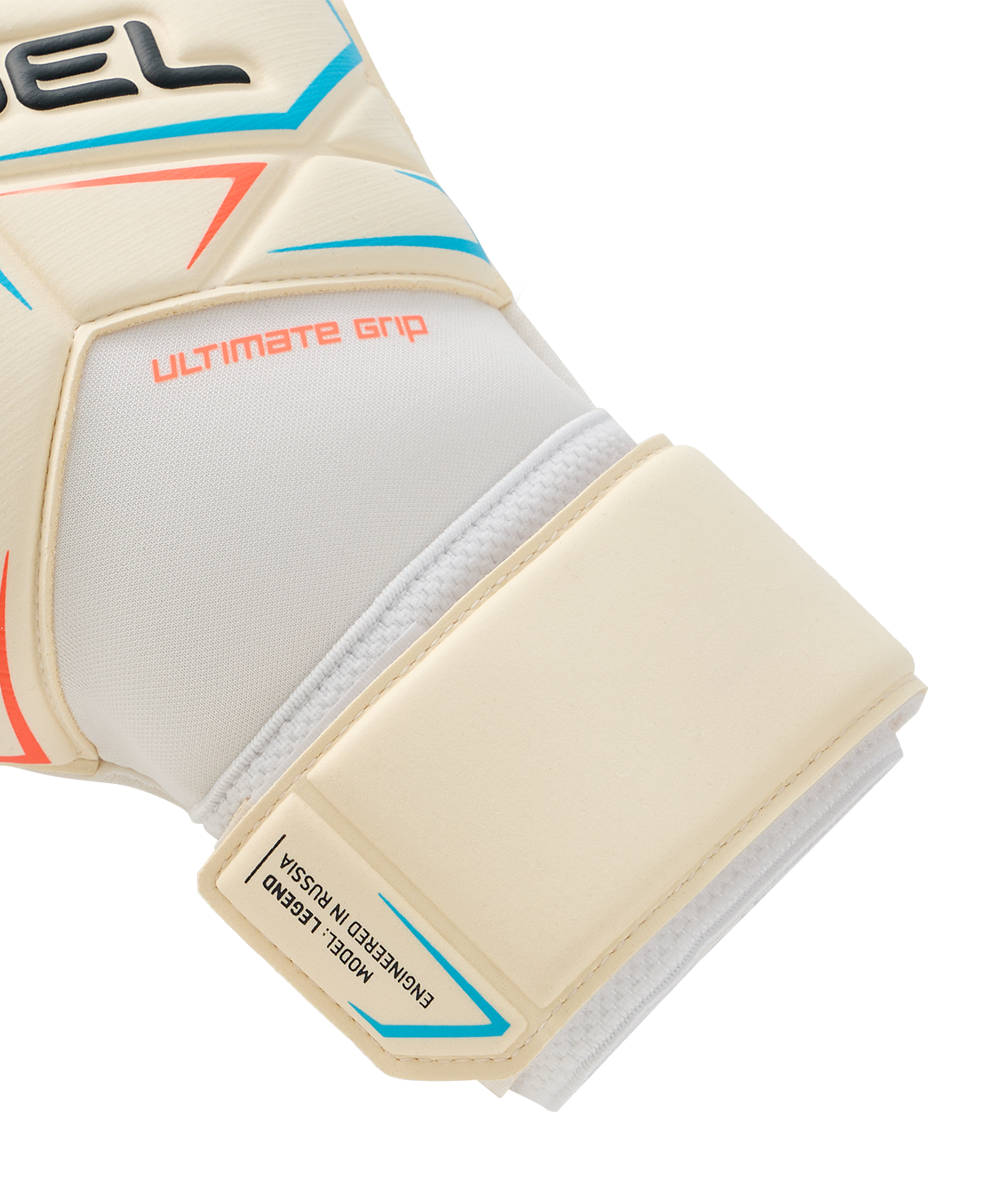 Уровень: Профессиональный\nКоллекция: 2025\nLegend UL4 — это профессиональные вратарские перчатки для тренировок и игры на любом уровне. В разработке модели участвовали вратари РПЛ. Ладонь выполнена из немецкого Ultimate латекса 4.0 мм., обладающего лучшими характеристиками цепкости и износостойкости. Roll Hybrid сохраняет цепкость кроя Roll finger и обеспечивает плотную посадку всех пальцев. Конструкция перчаток максимально облегчена за счет использования технологичных материалов. Внешняя сторона перчатки выполнена из Superior латекса 3.0 мм с 3D тиснением для комфортной игры кулаками. Legend UL4 созданы по технологии Free motion, которая делает использование перчаток максимально удобным и эффективным. Благодаря этому кисть может сгибаться в любые положения без дискомфорта, а у большого пальца появляется максимальная свобода. Манжета комфортно обволакивает кисть, создавая необходимую компрессию.\nХарактеристики:\nОсновной цвет: белый\nДополнительный цвет: голубой, коралловый\nМатериал ладони: ultimate latex 4.0 мм\nМатериал тыльной стороны: superior latex 3.0 мм\nКрой: roll negative\nЗащита пальцев: нет\nРазмерный ряд: 6, 7, 7.5, 8, 8.5, 9, 9.5, 10, 10.5, 11\nКомплектация: перчатки, фирменная сумка на молнии\nСтрана производства: Китай