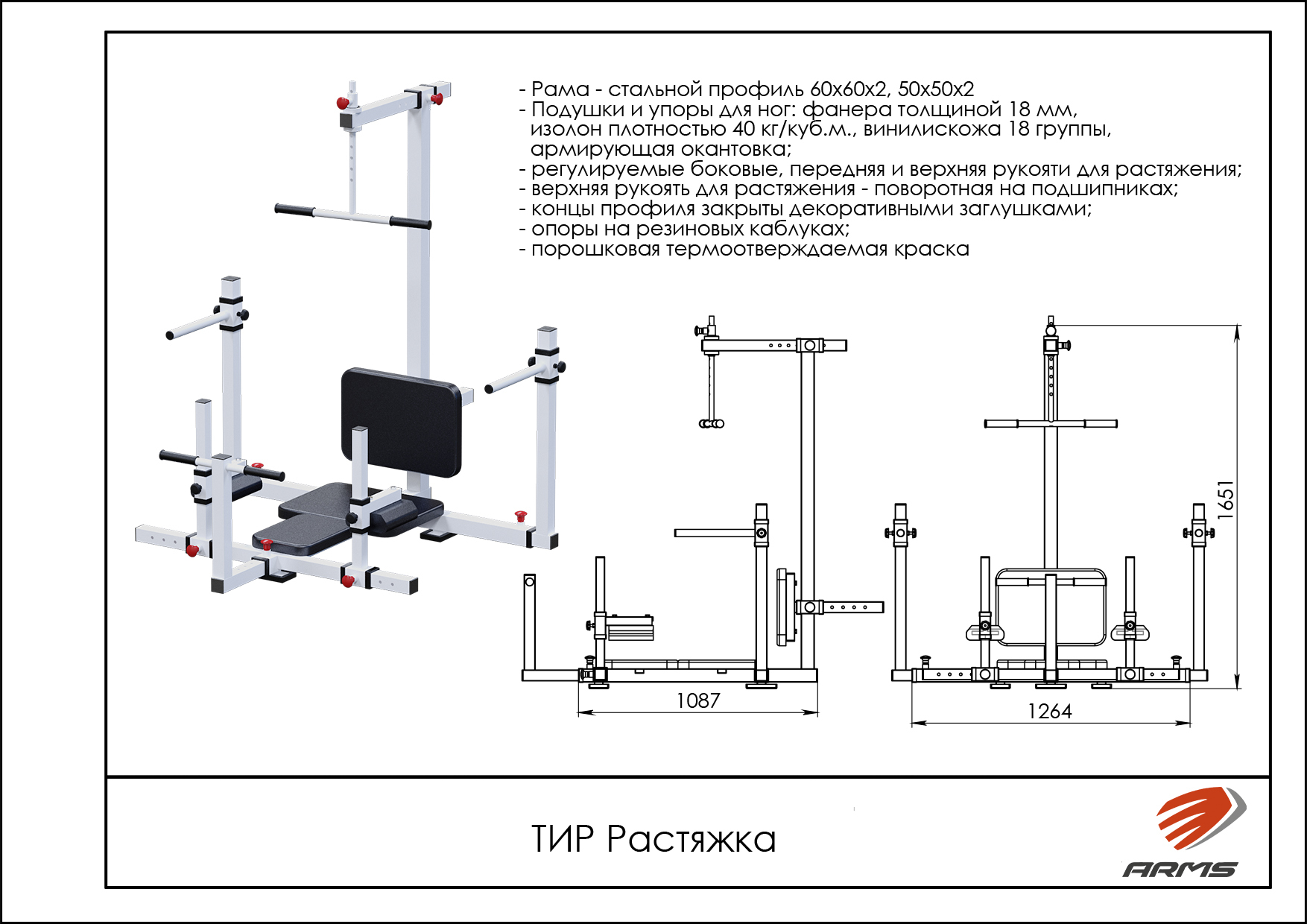 Тренажер предназначен для растяжки, разработки суставов ног и позвоночника. При этом происходит фиксация ног в позе «лотоса». Так же можно разрабатывать ноги – раздвигая и сдвигая их, а также наклонять их вместе в разные стороны – по очереди. При этом не нужно держать двум инструкторам – одному стопы, а другому давить и плечи и поворачивать туловище то в одну сторону, то в другую. А также раскрутки и разработки позвоночника в разные стороны за держатели для рук.