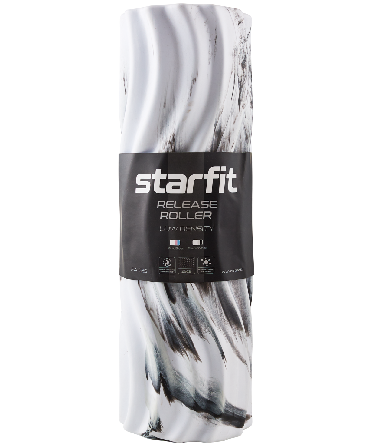Массажный ролик FA-525 от STARFIT – инвентарь, предназначенный для массажа после фитнеса или тяжелого рабочего дня. Спортивный валик также оптимален для йоги и тренировок, он поможет устранить боли в мышцах и суставах, быстрее восстановиться после травм. Кроме того, ролл для МФР положительно влияет на общее самочувствие. Вы можете использовать спортивный ролик для тела или локально проработать конкретную зону. Его рекомендуют применять для массажа ног, спины и шеи, а также в качестве вспомогательного средства для комплексного воздействия на целлюлит. FA-525 сделан из полипропилена и покрыт сверху упругим EVA. Этот эластичный материал отличается хорошей амортизацией, гигиеничностью и высокой износостойкостью. Уникальная поверхность модели имеет низкую жесткость, что позволяет осуществлять бережный массаж. Качественное воздействие обеспечивает особый волнообразный рисунок. Роллер FA-525 рекомендуется для людей с низким и средним гипертонусом мышц. Спортивный валик практичен. Такой массажер для ног или спины всегда готов к использованию, он не скользит и не деформируется. Его длина составляет 45 см, поэтому вы сможете взять его с собой в отпуск или командировку, чтобы снять усталость после насыщенного дня. Преимущества: Низкая жесткость; Возможность локальной проработки конкретной зоны; Безопасный массаж и восстановление мышц всего тела; Антистатическая нескользкая поверхность. Характеристики: Материал: этиленвинилацетат, полипропилен Цвет: белый/черный Длина, см: 45 Диаметр, см: 14 Максимальная нагрузка, кг: 250 Вес без упаковки, кг: 0,90 Тип упаковки: постер, стрейч пленка Количество в упаковке, шт: 1 Производство: КНР