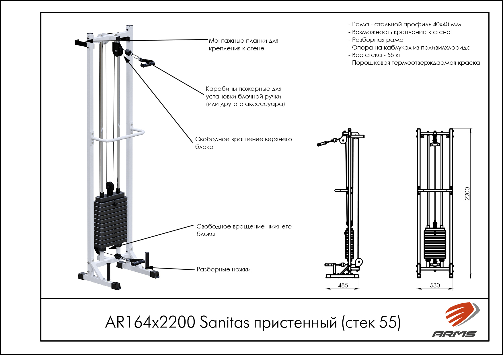 Тренажер Sanitas разборный предназначен для выполнения широкого ряда упражнений: развитие мышц пресса, груди, всех мышц рук и ног, а также реабилитационных упражнений таких заболеваний как остеохондроз, боли в шее, суставах и т.д.