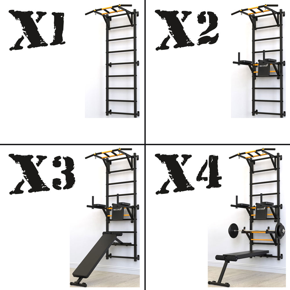 Шведская стенка Record X, без опоры, турник Классик, черный