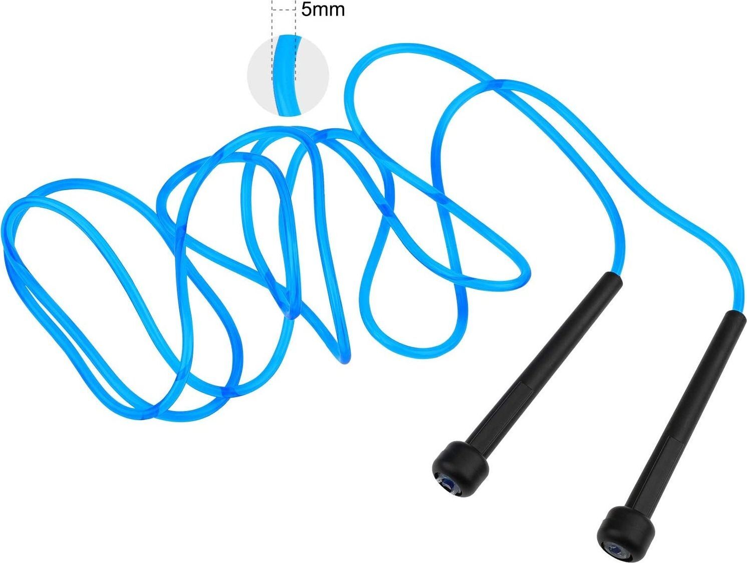 Перед тренировкой отрегулировать длину под себя. Встаньте двумя ногами на трос, трос должен быть на уровне груди, если он длиннее, то необходимо уменьшить длину троса. Снимите крышку на одной из ручек скакалки, выньте трос, раскройте фиксатор, отмерьте нужную длину троса, лишнее нужно отрезать, закройте фиксатор и уберите трос в ручку. Возьмите скакалку в руки и прыгайте на носочках с минимальным отрывом от земли (в несколько сантиметрах от носка). Чередуйте разные виды прыжков для нагрузки на разные мышцы ног: 1) ноги вместе, простые вертикальные прыжки. 2) чередуйте ноги, одна перед собой, другая сзади. 3) поочередно выбрасываем одну ногу вперед, носок на себя. 4) ноги вместе, прыжки вправо-влево.