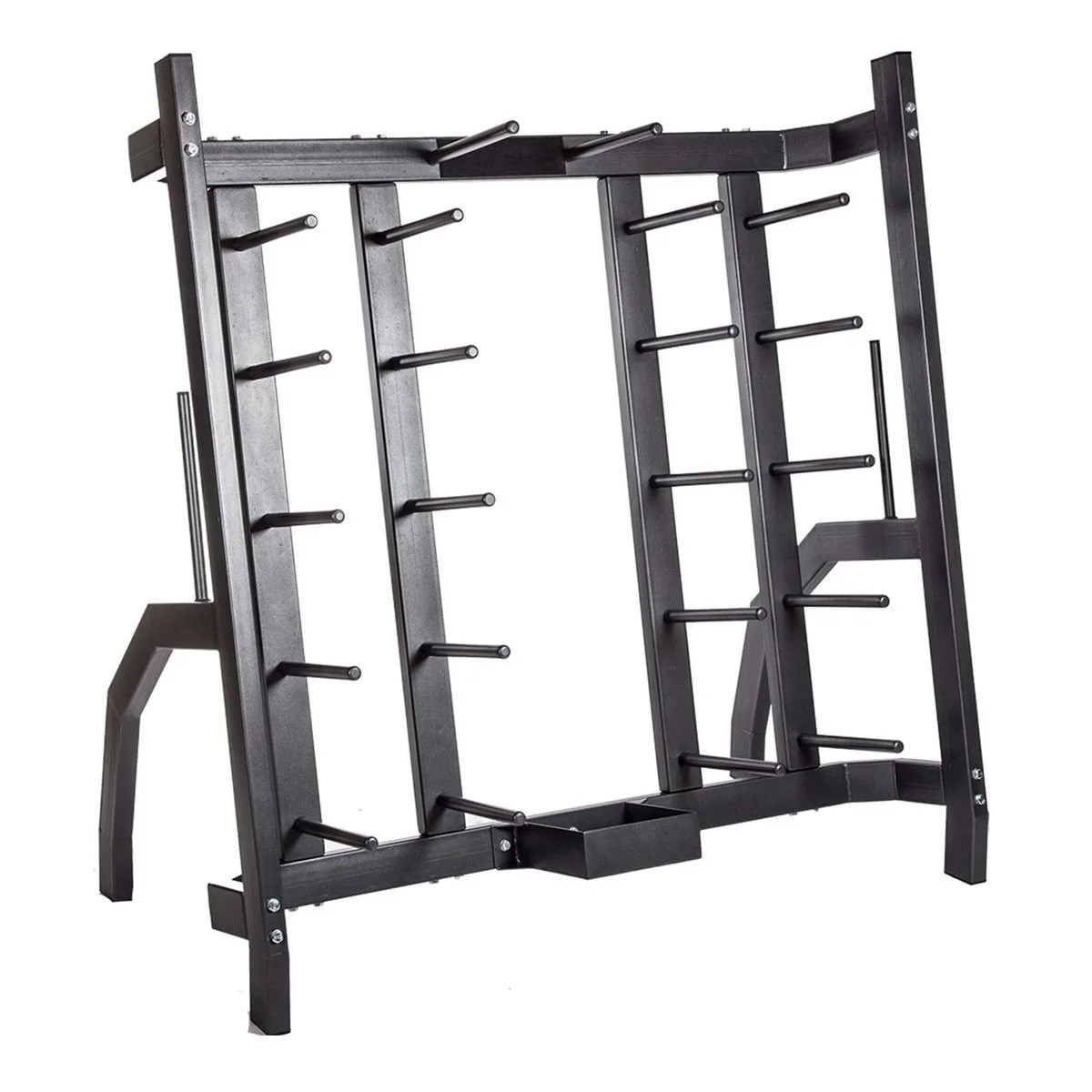 Стойка для фитнес штанг. Вместительная и компактная, благодаря вертикальному размещению штанг, позволяет хранить различные веса на сравнительно небольшой площади.