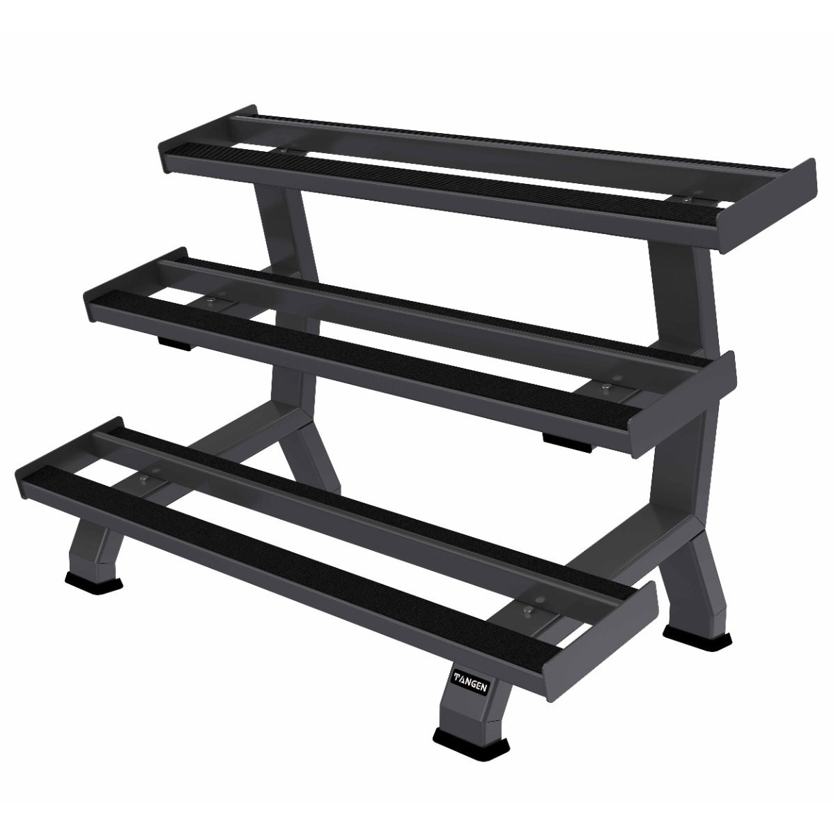 Стойка предназначена для хранения и удобного использования гексагональных гантелей, представляет собой сборную металлическую конструкцию с тремя полками.
