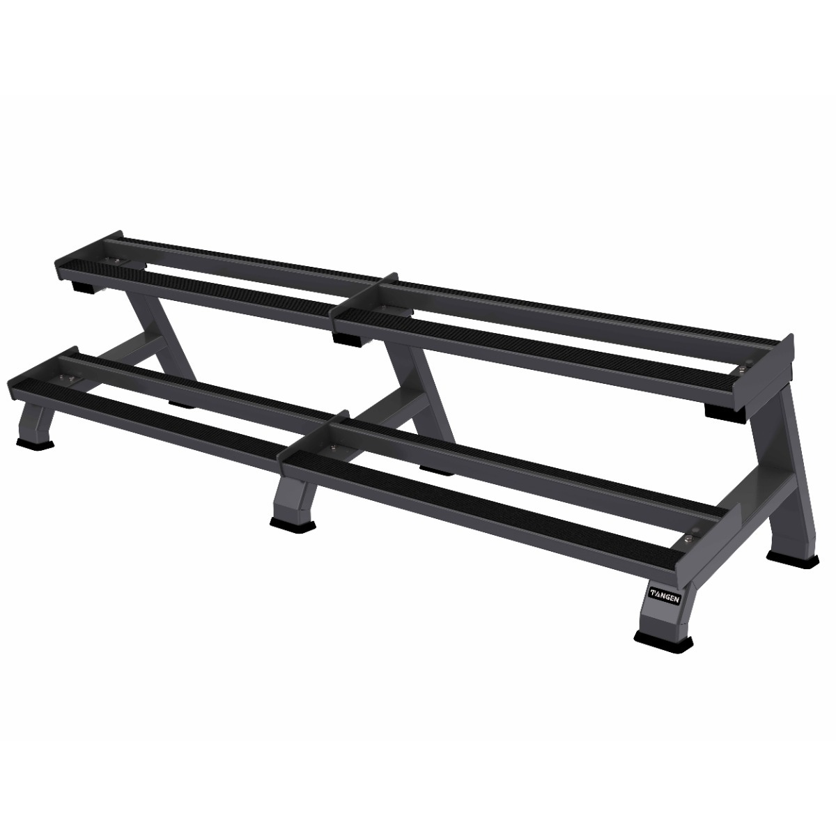 Стойка предназначена для хранения и удобного использования гексагональных гантелей, представляет собой сборную металлическую конструкцию с двумя полками.