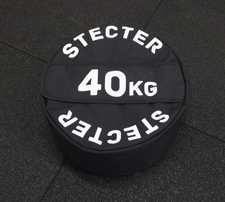 Компания Stecter выпускает песочные мешки для стронгменов с диапазоном веса от 40 до 120 кг. Их диаметр составляет – 40 см и отличие заключается лишь в высоте. Каждый элемент состоит из двух слоев. Первый – внутренний филлер с удобным клапаном для песка, который застегивается на дополнительные липучки. Поверху надевается дополнительный чехол из прочной ткани кордуры, чтобы песок не просыпался. Кордура – специализированная долговечная ткань, устойчивая к серьезным нагрузкам. Она имеет водоотталкивающую пропитку, что делает ее идеальным материалом для спортивных тренировок.