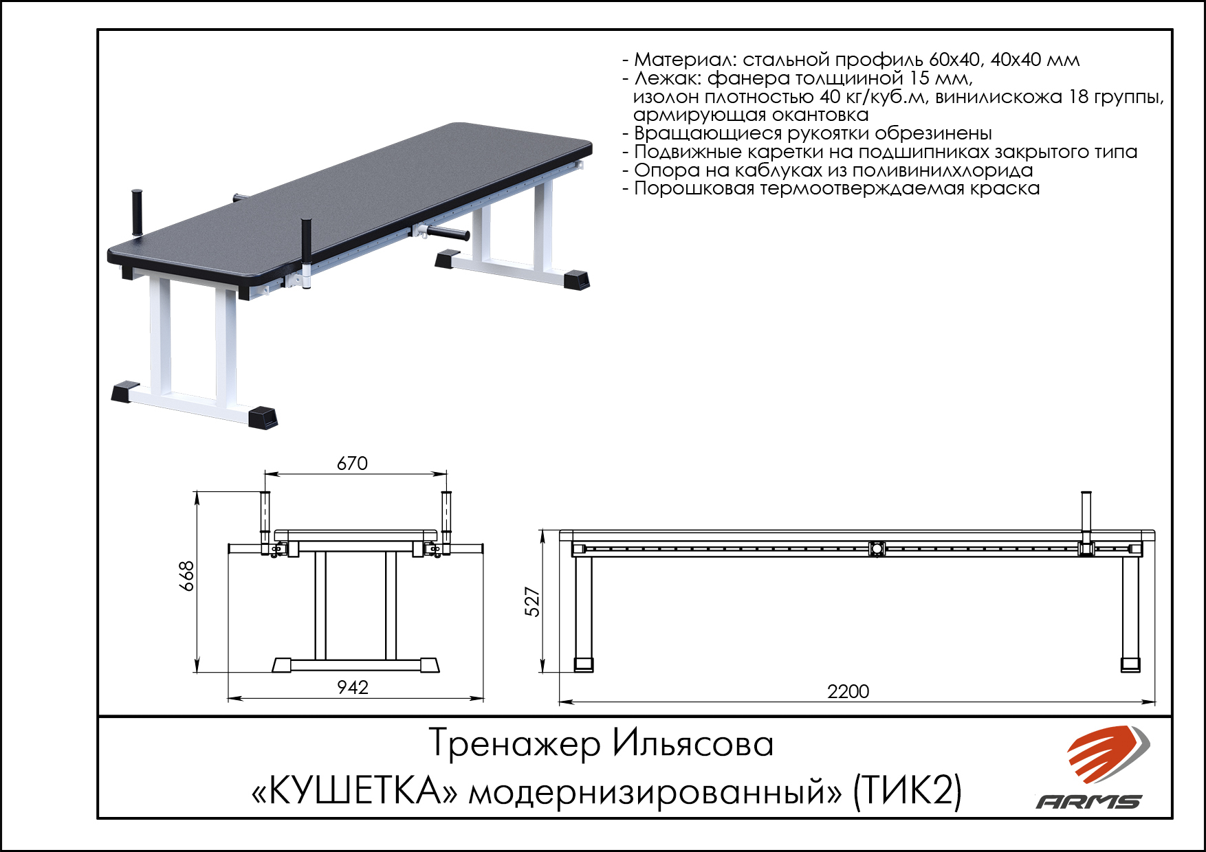 В комплектации данной модернизированной модели каждая рукоятка содержит модуль движения, имеющий ролики вращения и выполненный с возможностью продольного перемещения по направляющему рельсу. Все рукоятки вращаются вокруг своей оси, что позволяет полностью предотвратить травмирование суставов, особенно при тренировках инвалидов, суставы которых малоподвижны и сильно ограничены в движениях.