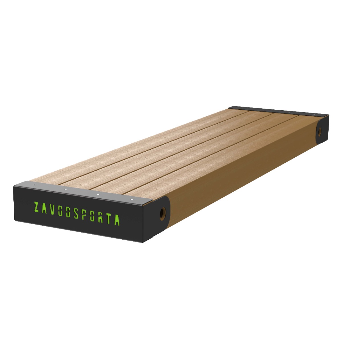 На торце скамьи металлическая табличка с брендом ZAVODSPORTA, изготовленная при помощи лазерного оборудования с ЧПУ.