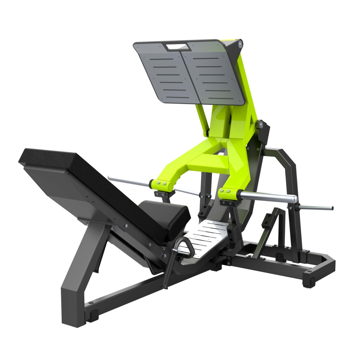 Платформа для толчка (размер: 690×495 мм) выполнена из металлического основания и оснащена двумя накладками из нержавеющей стали (размер каждой: 323×478 мм), закреплёнными болтовым соединением. Поверхность устойчива к износу и обеспечивает надёжное сцепление стоп во время выполнения упражнения.